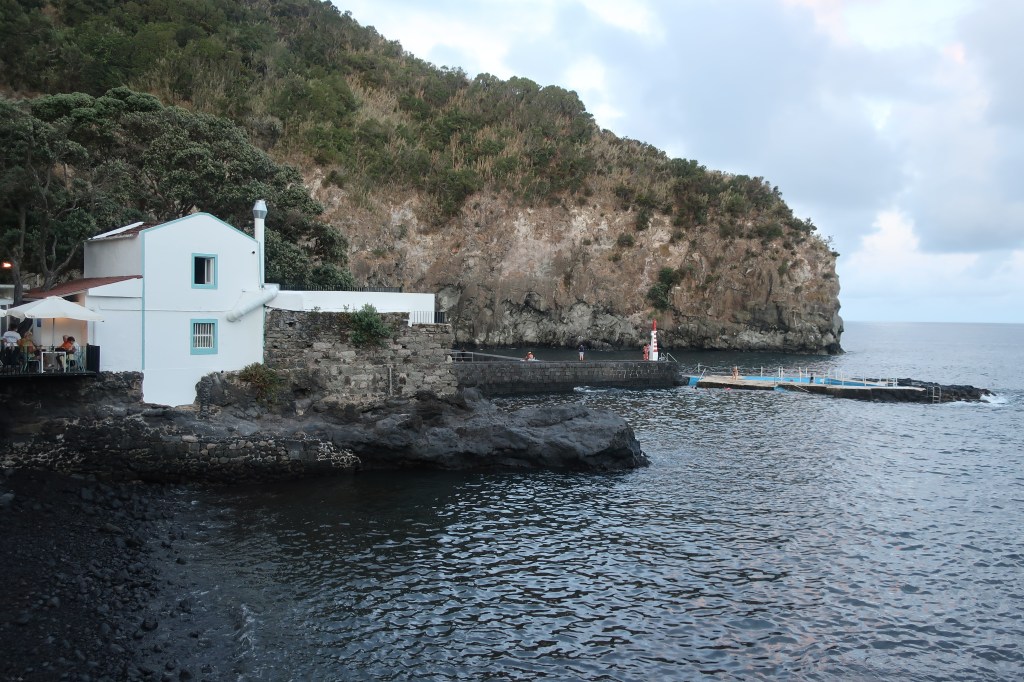 Como fizemos check in a meio da tarde (chegados da ilha de Santa Maria) e ficámos encantados com a localização do hotel, que dispõe de acesso direto ao mar, fomos ver se podíamos entrar na água mas desistimos pela ausência de escadas de apoio e ondulação forte. Mas valeu a pena a deslocação pois a paisagem é deslumbrante! De regresso fomos nadar e gozar a tranquilidade da piscina do hotel.