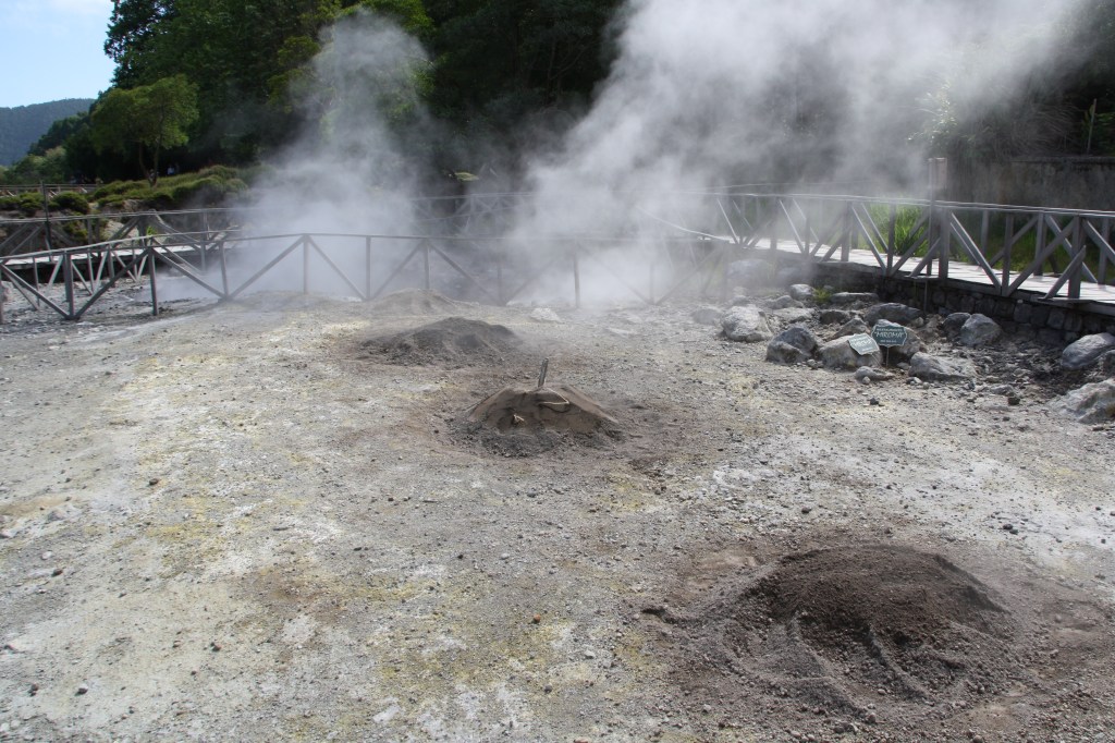 e ainda com os buracos no chão vulcânico usados por vários restaurantes, onde são colocados tachos, tapados com panos e dentro de sacos, durante várias horas, donde depois sai o famoso cozido (tem algumas semelhanças com o tradicional cozido à portuguesa mas com um sabor mais apurado, devido à lenta cozedura, incluindo o inhame nos acompanhamentos).