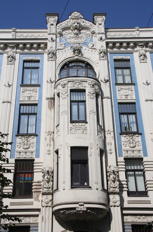 “A arquitetura Art Nouveau em Riga representa cerca de um terço de todos os edifícios no centro de Riga, tornando a capital da Letónia a cidade com a maior concentração de arquitetura Art Nouveau em qualquer lugar do mundo. Construídos durante um período de rápido crescimento econômico, a maioria dos edifícios Art Nouveau de Riga datam de 1904 a 1914. O estilo é mais comumente representado em prédios de apartamentos de vários andares.