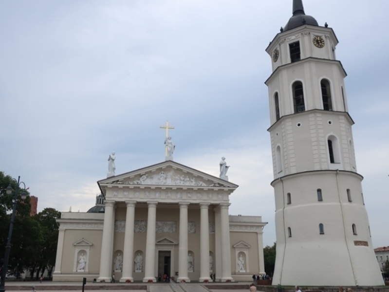 É interessante começar a desbravar o que até ao momento não passava de “circuito virtual”. Saímos do hotel e fomos tomando contacto com a cidade. Passámos pelo Museu da KGB. De seguida fizemos o percurso ao longo da (Avenida Gedimino) Gedimino Prospektas que nos conduzia até aos locais de maior interesse de Vilnius. Ao longo dessa avenida fomos observando e fotografando edifícios que saltavam à vista até atingirmos o fim que desembocava na Praça da Catedral. Logo que se começou a vislumbrar tal, dávamos connosco a arranjar perspetivas interessantes para fotografar o Campanário da Catedral bem como a Catedral.
