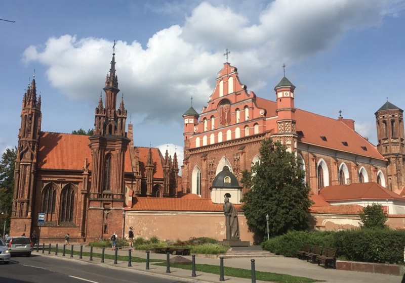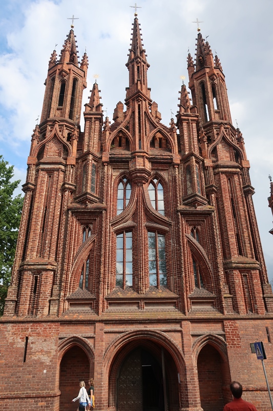 A Igreja de Santa Ana em estilo Gótico Flamejante, conseguiu sobreviver aos tumultos, ao longo dos séculos. Diz-se que durante a guerra franco-russa, tendo Napoleão deixado a Rússia e passado por Vilnius e se ter encantado nesta igreja, levou-o a dizer que gostaria de a levar para Paris na palma da mão! É de facto uma igreja imponente. A sua fachada ricamente ornamentada com arcos de ogiva e janelas esguias apresenta ainda pináculos cobertos por florões decorativos. Ela exibe 33 tipos diferentes de tijolos de barro.