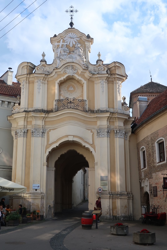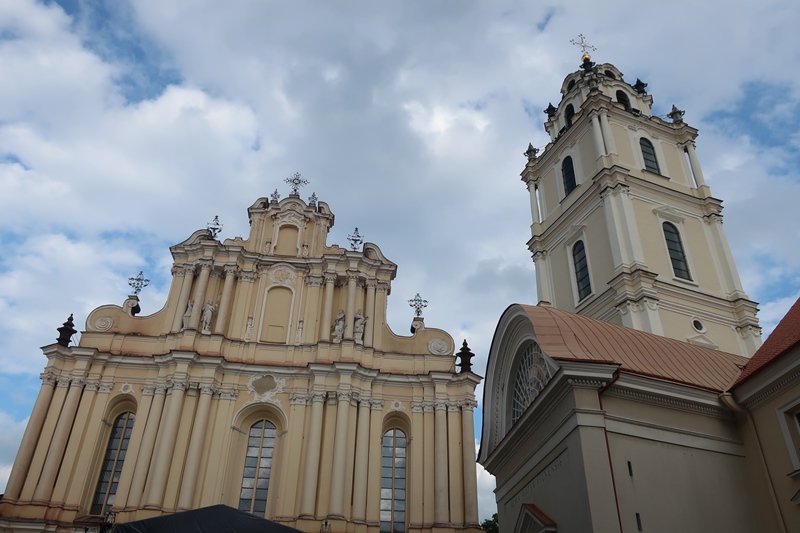 uma das mais antigas da cidade e que oferece uma bela perspetiva do local onde tínhamos estado – o Castelo Superior. Outrora foi o principal centro de comércio de Vilnius, sendo hoje muito popular pois alberga muitas esplanadas e restaurantes bem como lojas de âmbar, entre outras. Não quisemos ser exceção e também nós almoçámos nessa tão alegre e famosa rua, mas não antes de termos dedicado algum tempo ao campus da Universidade (onde tencionávamos visitar a Livraria Littera– famosa pelos seus frescos- mas estava em restauro) do qual fazem parte a Igreja de S. João e o seu Campanário, com 68 metros de altura, sendo assim o edifício mais alto do centro histórico, oferecendo vistas interessantes sobre a cidade.