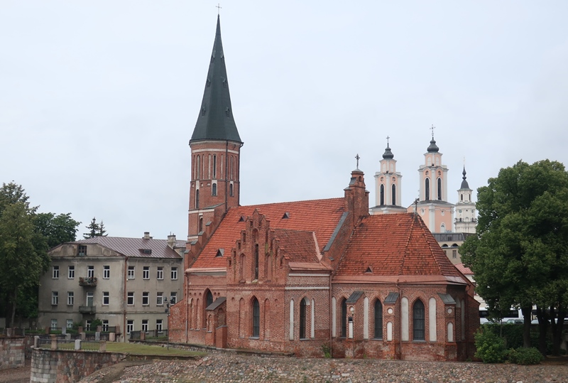 A seguir entrámos na Igreja de Vytautas. Esta igreja em tijolo vermelho, erigida nas margens do rio Nemunas, por ordem de Vyvautas, o Grande, remonta ao séc. XV. Andando alguns metros alcançámos uma praça onde se situa a antiga Câmara Municipal, que mais parece uma igreja e que é conhecida como “Cisne Branco” bem como a Igreja da Santíssima Trindade a qual associa os estilos Gótico e Renascentista, tendo o seu interior sido remodelado antes do início da II Guerra Mundial.