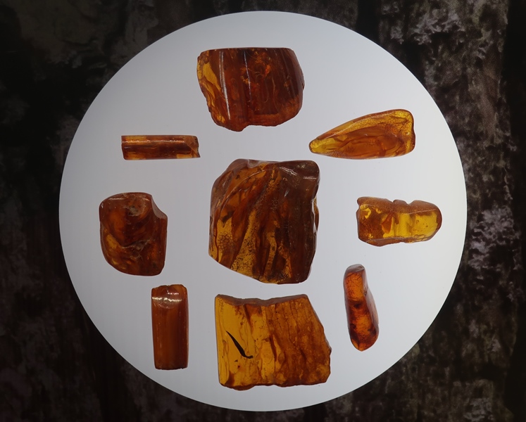 “O âmbar é uma resina fóssil muito usada para a manufatura de objetos ornamentais. Desde a pré-história, as regiões banhadas pelo Mar Báltico, como Lituânia, Letônia e Estônia, são a principal fonte de âmbar. Acredita-se que o material foi utilizado desde a Idade da Pedra.