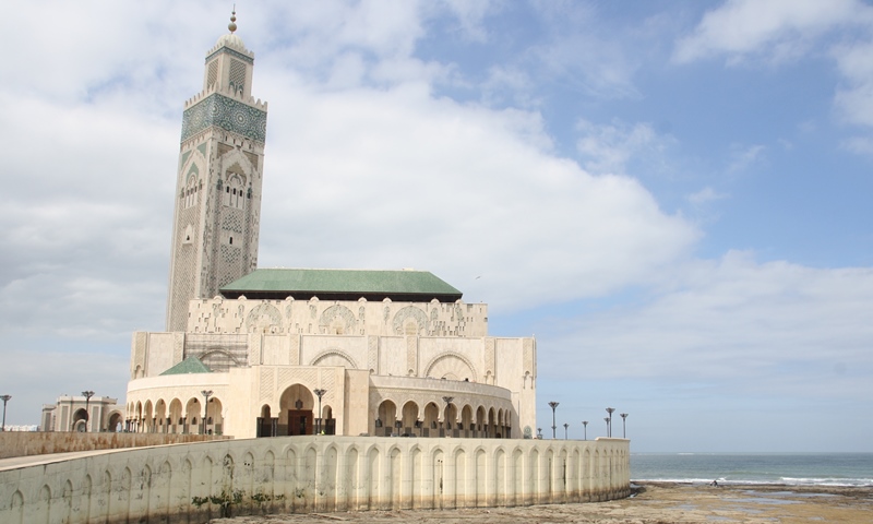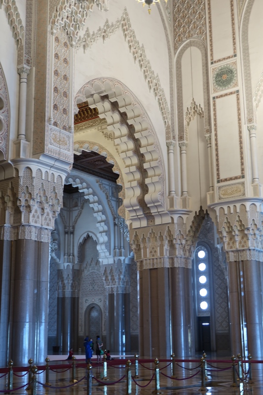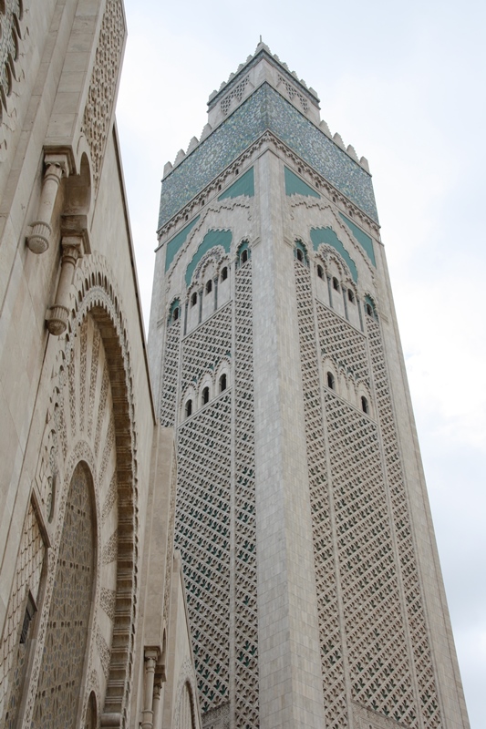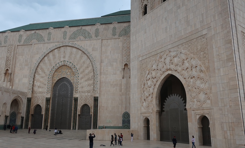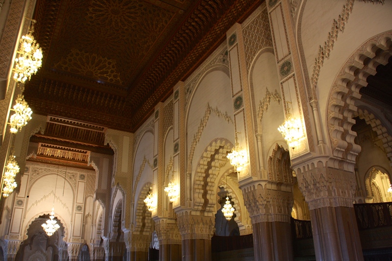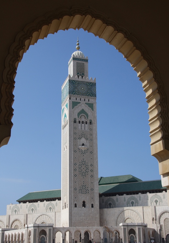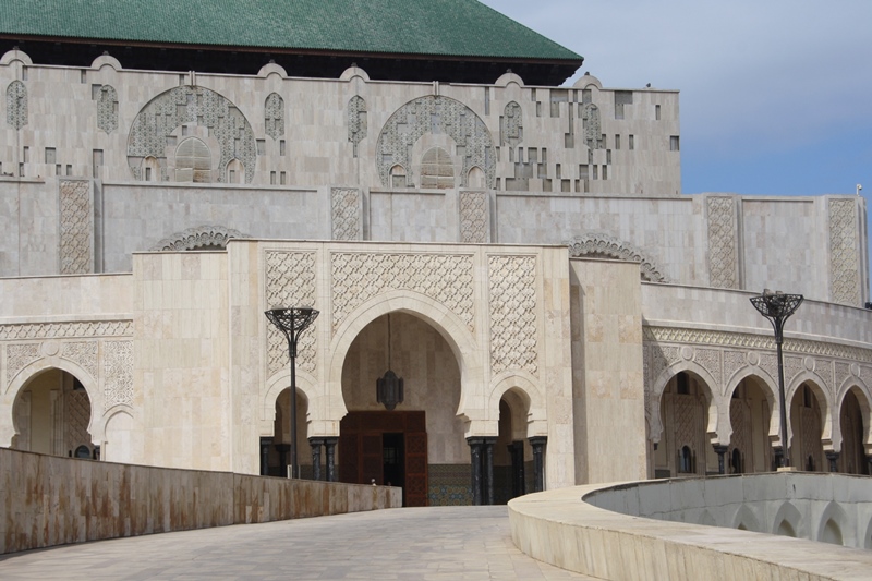 A Mesquita Hassan II, começada em 1985 foi inaugurada em 1993, com capacidade para acolher 100 000 fiéis – 25 000 na sala de orações e 75 000 no pátio – é uma das maiores do mundo. A sala de orações mede 200 por 100 metros. Tem um espaço denominado como Galeria das Mulheres que se situa no piso superior, longe da vista de qualquer um e pode albergar mais de 5000 mulheres. A parte central pode-se abrir para o céu. Uma vez na semana o edifício pode funcionar como escola islâmica, salas de conferências, banhos e biblioteca. Possui ainda um estacionamento subterrâneo. O complexo ocupa 9 hectares e:
