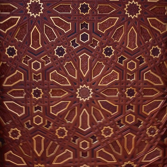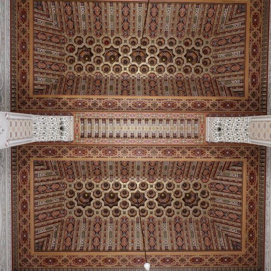 Ora aí estão os elementos referidos: estuque esculpido, tectos de cedro, pavimento e colunas trabalhados em mármore, granito, ónix e travertino, bem como paredes e/ou colunas enriquecidas com mosaicos cerâmicos típicos de Marrocos (zellij).