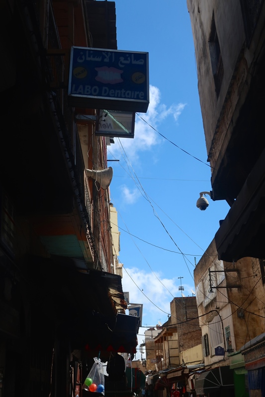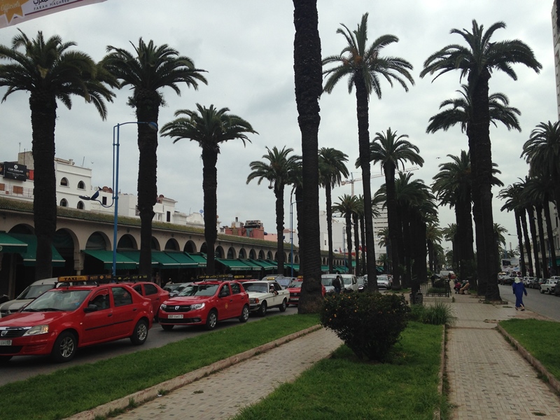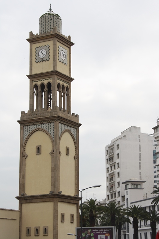 Começámos a vislumbrar a Torre do Relógio perto da qual se iniciava a Medina Antiga com uma porta característica da entrada destes espaços. Antes de nos embrenharmos nesse espaço com características muito peculiares, demos uma volta pela Avenidas das Forças Armadas Reais, Moahamed V e Houphouet- Boicny.