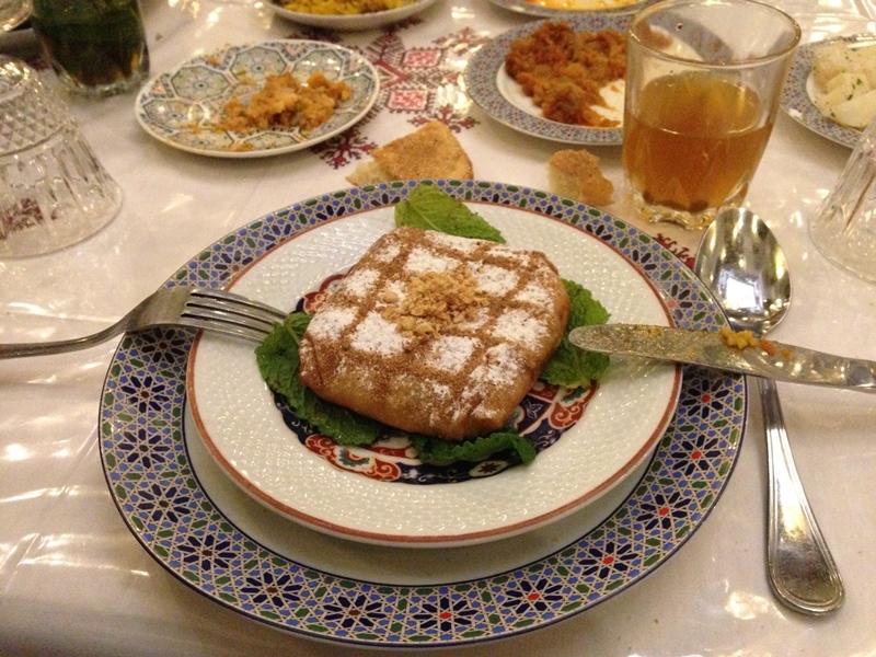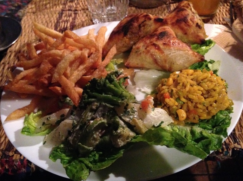 Restaurante Chez Brahim (próximo da Praça) preenchia os requisitos. Para além do espaço interior ser descontraído e ao mesmo tempo requintado, tinha também música ao vivo e a comida era boa e estava muito bem confecionada.