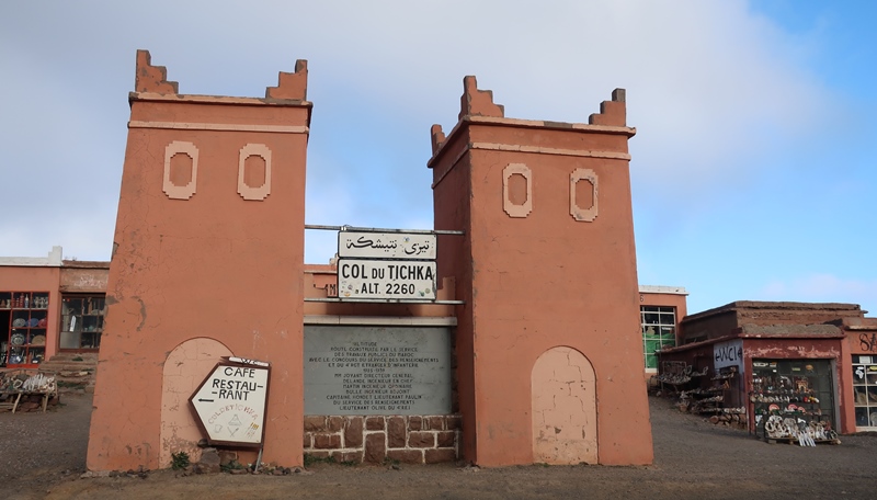 A seguir penetrámos outra vez no interior da medina e acabámos por aí almoçar no Terrasse Lala Moulati – donde tínhamos panorâmicas para vários sítios da medina. Após esse momento descontraído tínhamos que nos fazer à estrada pois esperavam-nos cerca de 200 km (4 horas) até Ouarzazate. Fomos passando tanto por zonas áridas como por vales fertéis e aldeias em tons de vermelho ou cinza amontoadas no sopé das encostas. Fizemos algumas paragens num caminho ziguezagueante, coincidindo uma delas com Tizi-n-Tichka que ficava a 2260 metros de altitude, a qual é a passagem de estrada mais alta de Marrocos.