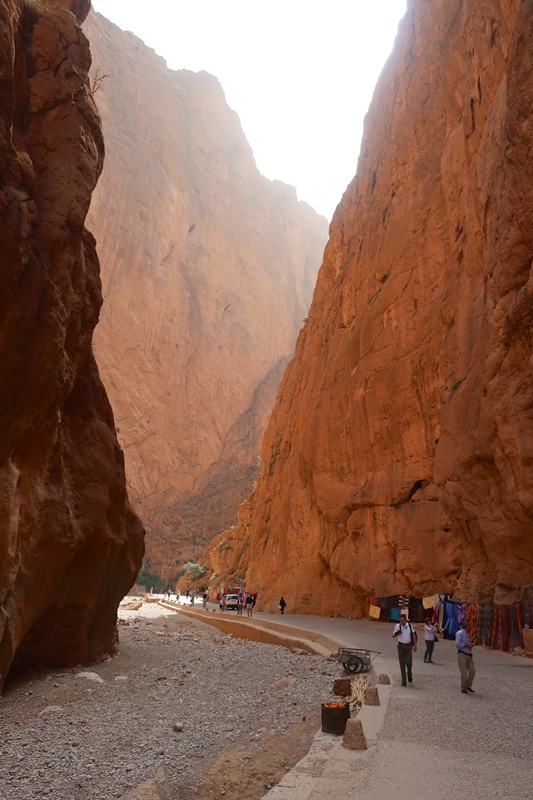 “um desfiladeiro muito profundo e estreito, ladeado de escarpas muito íngremes que chegam a ter 200 metros de altura nos últimos 40 km do percurso através das montanhas (…) Os últimos 600 metros constituem o trecho mais espetacular. Aí, o desfiladeiro fica ainda mais estreito, não ultrapassando os 10 m de largura em alguns lugares, e é ladeado por paredes praticamente verticais de rocha macia que atingem os 160 m de altura.” https://pt.wikipedia.org/wiki/Rio_Todgha