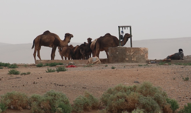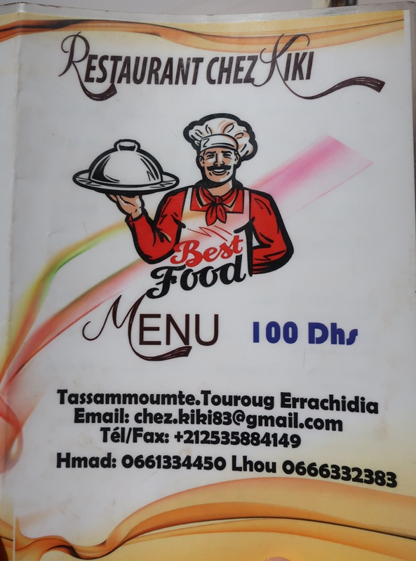 Depois de mais um momento em que as máquinas fotográficas já pediam descanso, tínhamos ainda cerca de 200 km pela frente para chegar a Merzouga à beira do deserto (2h 45m – N12/R702). O trajeto que fomos fazendo era um pouco desértico, com lugarejos à beira da estrada com casas muito pobres, marroquinos sentados de uma forma descontraída a ver quem passava. Mas tudo aí havia – desde cabeleireiros a oficina de arranjo de carros…..Antes de Erfoud (ou Arfoud), mais ou menos a meio do trajeto, vimos informação de um restaurante e como coincidiu com a hora de almoço, aproveitámos e fizemos uma paragem por aquelas bandas. É impressionante encontrar um lugar destes no meio do nada. Há que saber tirar partido de uma estrada que é utilizada por quem por ali se desloca para chegar ao deserto.