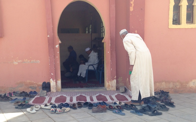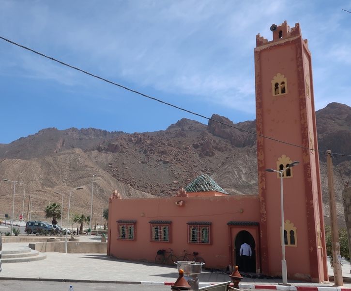 Durante algum tempo fomos acompanhando o rio Ziz e as suas gargantas e num lugarejo perto daí (depois de termos passado pelo Túnel do Legionário) – Hamat Moulay Alk Sharif parámos, demos uma volta por aí e almoçámos numa esplanada perto de uma mesquita. Foi interessante observar os rituais necessários antes da entrada nesse local de oração.