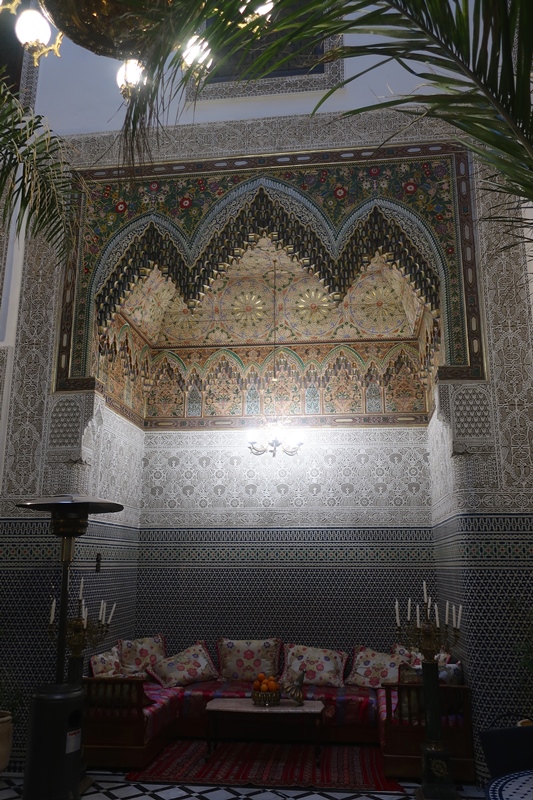 Como já tínhamos”trabalhado ” muito e o guia também, no meio daquele labirinto lá estava algo escondido dos olhares de cada um – o Restaurante Nejjarine – um local típico – um riad – não há palavras para descrever locais como este!