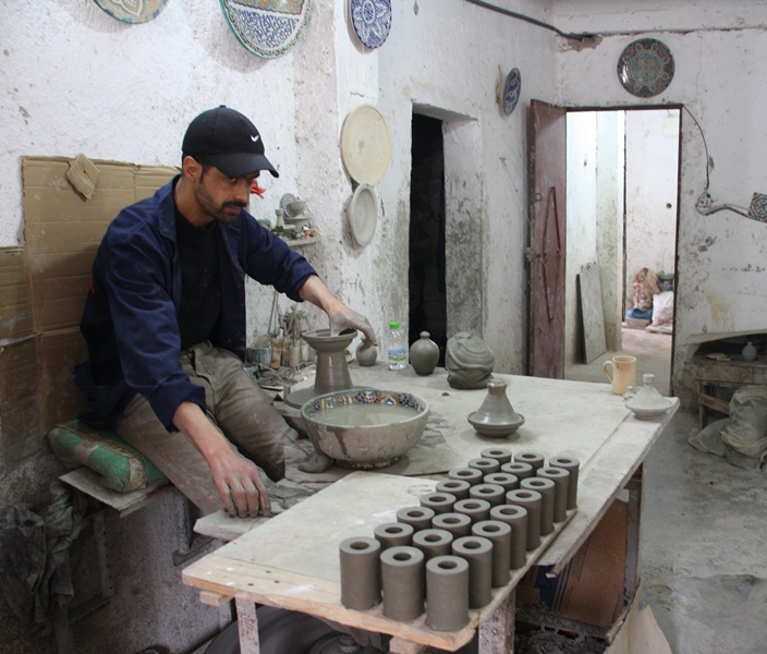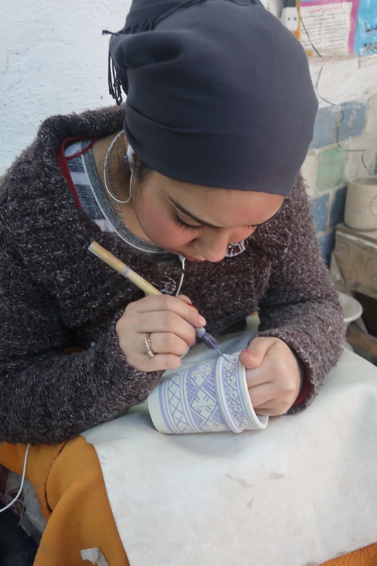 Vimos os artífices a fazer todo o tipo de artigos – desde tajines (panela em cerâmica com tampa cónica) , a tampos de mesa, a pratos… Muito interessante!