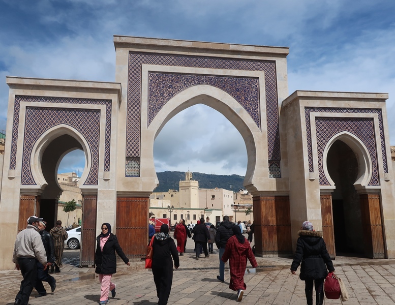 Tendo chegado ao fim do dia a Fez, jantámos no hotel e demos uma volta nas imediações para começarmos a ficar com alguma ideia da cidade. Ao longo do trajeto conversámos com um casal novo que passeava um bebé, que quase pareciam europeus, e que nos aconselharam a não andar a pé à noite, pois podia tornar-se perigoso. No nosso passeio ainda avistámos Bab Boujeloud.
