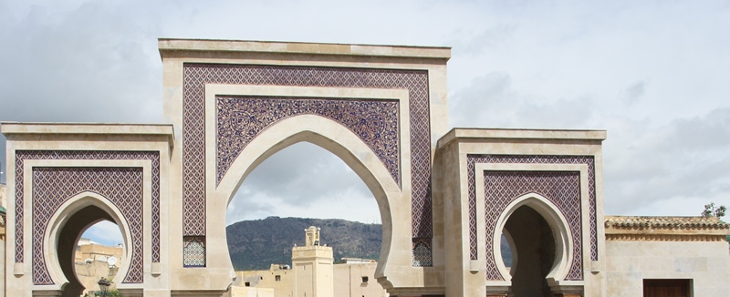 Este portão monumental é a entrada principal do centro histórico (El- Bali). Construído em 1913 em estilo mourisco consiste em 3 arcos simétricos em forma de ferradura, decorados com padrões geométricos, motivos florais e azulejos vidrados de várias cores com predomínio do azul.