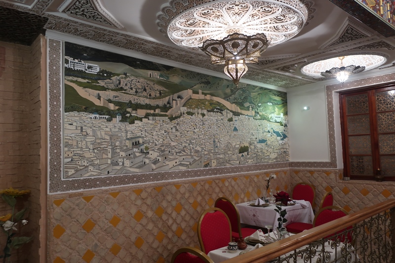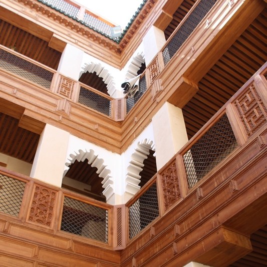 Com estuque esculpido, tetos de cedro, pavimento e colunas trabalhados em mármore, granito, ónix e travertino, bem como paredes e/ou colunas enriquecidas com mosaicos cerâmicos típicos de Marrocos (zellij), faz deste local algo inigualável.