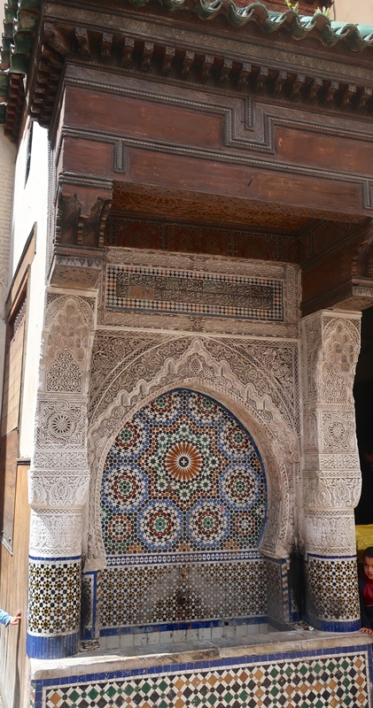 Ainda na mesma zona fomos apreciar o pátio da Fondouk el-Nejjarine que é um dos edifícios mais célebres de Fez com uma elegante fonte. (fondouk – edifício de planta quadrangular ou retangular com um pátio central a céu aberto designados para acomodar mercadores e os seus servos, animais e mercadorias).