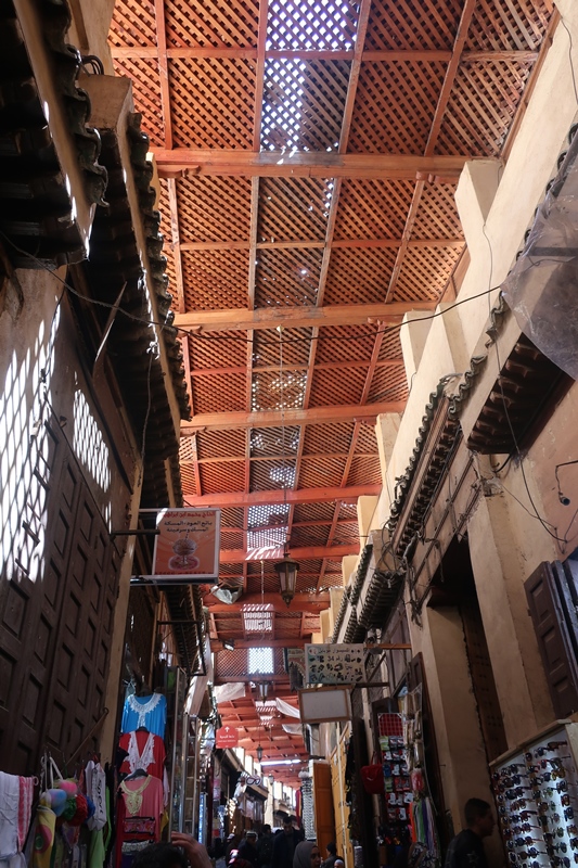 A pé embrenhámo-nos então noutras zonas da medina: é labiríntica possuindo 9800 ruelas, mas foi espetacular. Sentimo-nos num El Corte Inglês marroquino com uma oferta a todos os níveis. Circulámos pelas mais diversas áreas: legumes, peixe, carne, especiarias, artigos mais desusados, roupas…. Visitámos também uma fábrica de tapeçarias que de alguma maneira nos faz lembrar Arraiolos, tendo no entanto os tapetes outro tipo de design e sendo confecionados de uma forma diferente.
