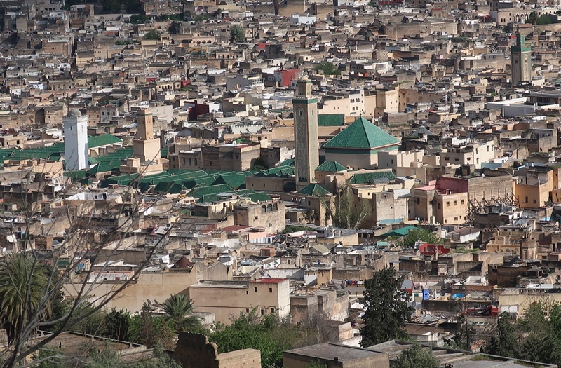 Esperava-nos um dia sui generis nas nossas vidas, mas não nos arrependemos de termos escolhido conhecer a labiríntica medina de Fez, acompanhados pelo guia Mustafa. (dia inteiro – 400 Dh+100Dh pela amabilidade). Aconselhou que começássemos o nosso dia por ver Fez de um plano alto. Para tal dirigimo-nos para lá de carro, seguindo as instruções dele, que foi connosco. De lá têm-se panorâmicas fabulosas sobre a cidade e entende-se o quão compacta é!