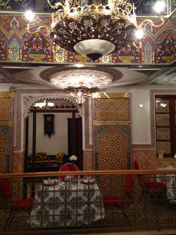 Jantámos no restaurante do hotel – o acesso à zona de refeições era requintadíssimo com características marroquinas – 3 arcos servindo um de entrada com 2 potes a abrilhantá-la.