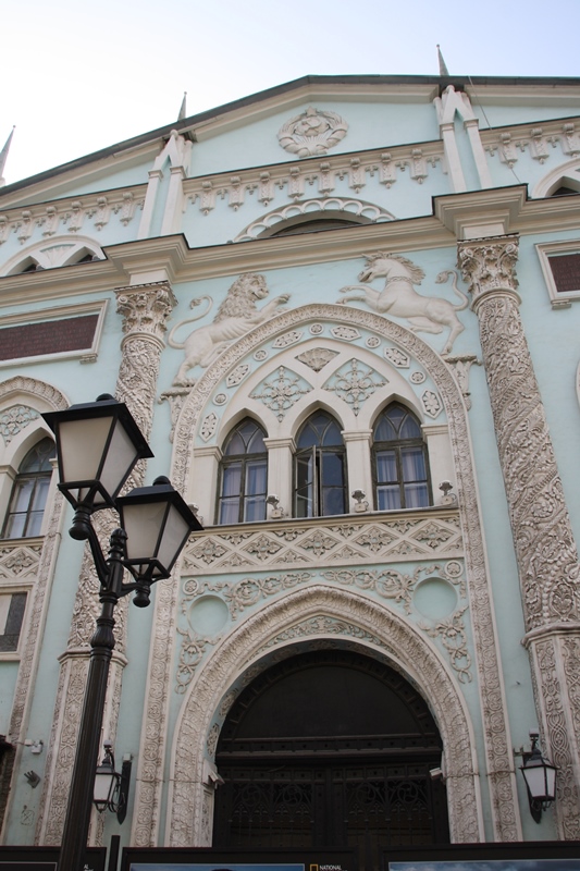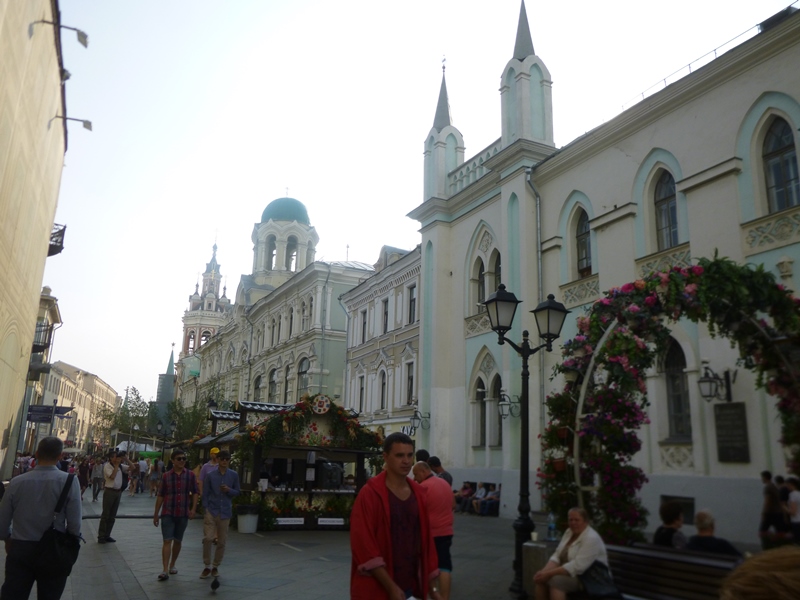 Depois caminhámos ao longo da Rua Nikolskaya a qual é rica em lojas e edifícios interessantes sendo de realçar o Mosteiro Zaikonospasskiy ( em estilo renascentista russo do séc. XVII, cuja torre do sino é octogonal) e a Catedral Spasskiy (um dos grandes exemplos da arquitetura barroca russa).