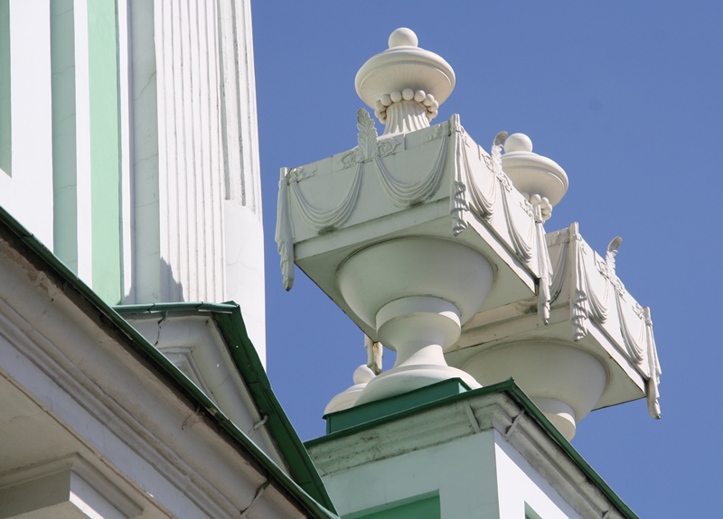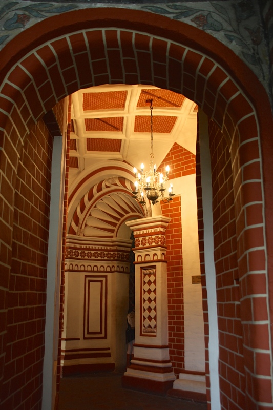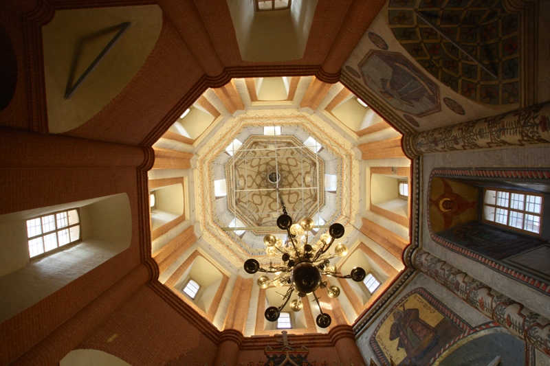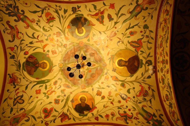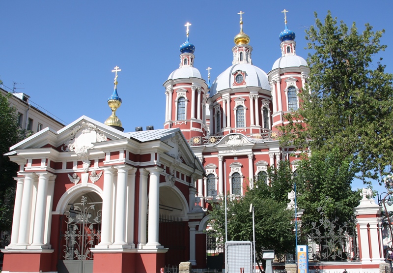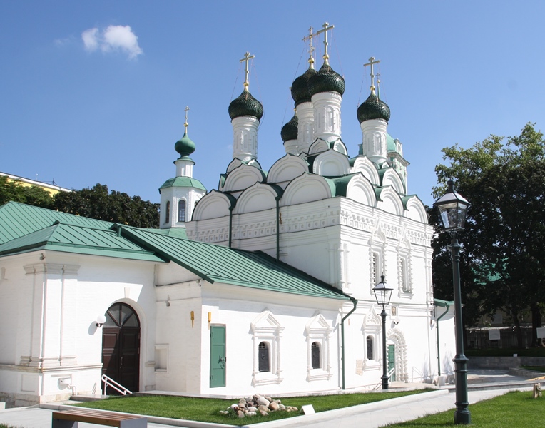Conseguimos entrar no Templo da Decapitação de São Batista, que se situa na Rua Piatnitzkaya e tem uma torre sineira alta pintada de verde e branco. O seu interior apresenta-se ricamente decorado, de acordo com os padrões da Igreja Ortodoxa Russa.