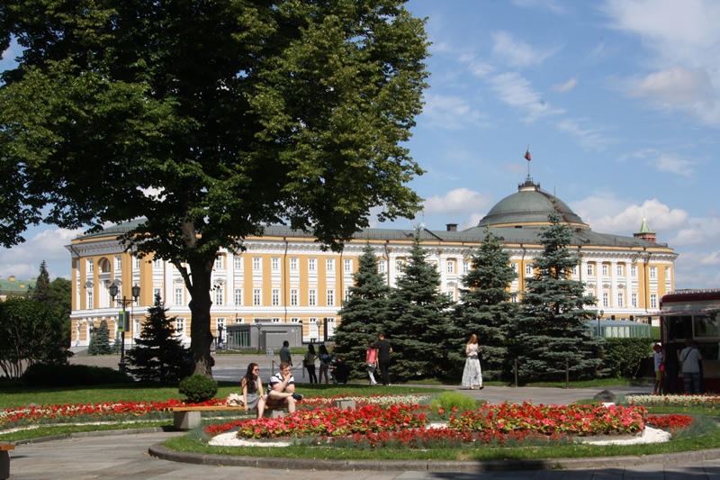Daqui seguimos para o Jardim de Alexandre, o qual foi um dos primeiros parques urbanos públicos, sendo composto por três jardins separados, que se estendem ao longo de todo o comprimento da muralha ocidental do Kremlin. Foi construído (1819-1823) em homenagem a Alexandre I da Rússia após a vitória sobre as tropas de Napoleão em 1812. É uma zona descontraída e interessante : após a entrada, à esquerda está o Túmulo do Soldado Desconhecido e mais à frente, à direita, uma grande fonte com quatro cavalos de bronze que parecem pretender atravessá-la, conhecida como Fonte das Quatro Estações do Ano. Nas proximidades existe a Biblioteca Lenine.