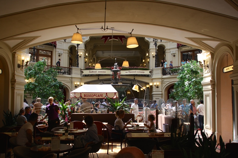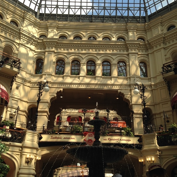 o edifício Gum, centro comercial que se impõe pelo seu tamanho e beleza arquitetónica,