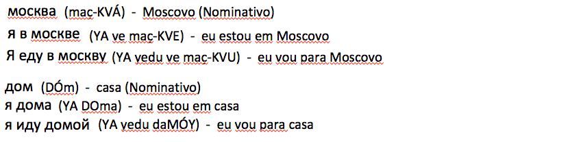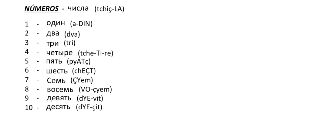 Seguidamente, apresentamos algumas palavras da língua russa escritas em cirílico, de modo a possibilitar a sua compreensão quando aparecerem escritas.