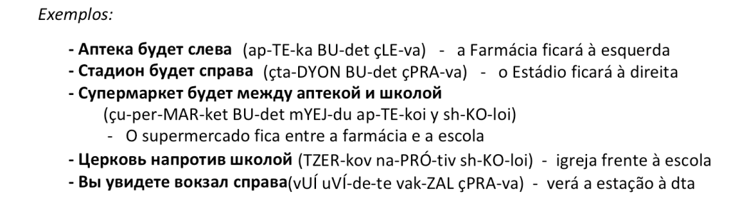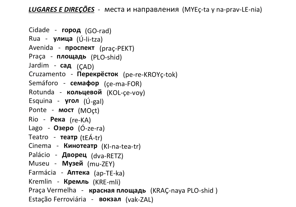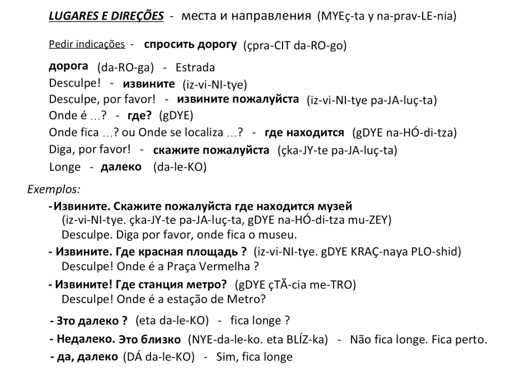 Foi com o intuito de facilitar o pedido de informação sobre locais e direções, para quem se queira aventurar por conta própria por terras em que o russo é língua franca (do Cáucaso aos estados bálticos e às repúblicas da Ásia central), que elaborámos este artigo “Direções” do “Russo – Glossário do Viajante”.