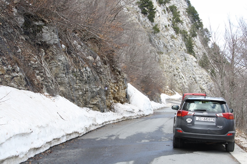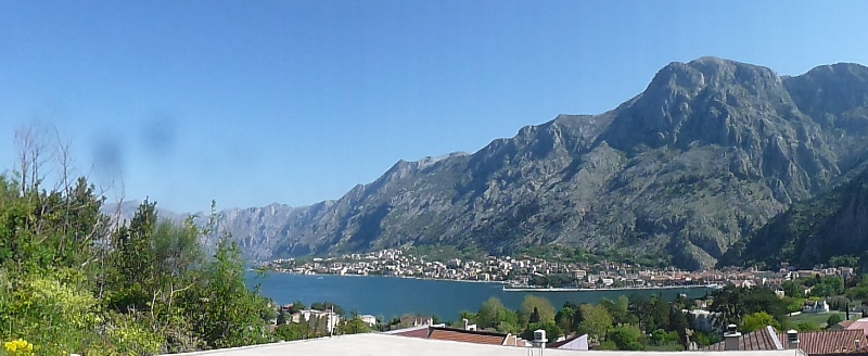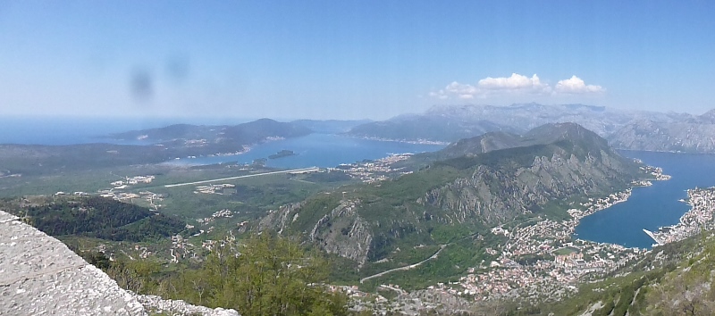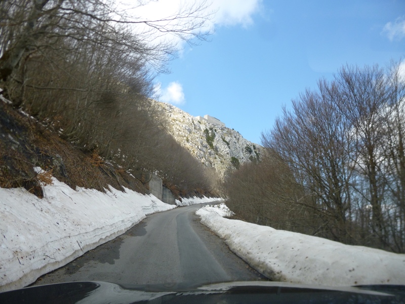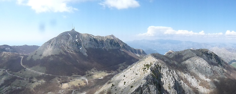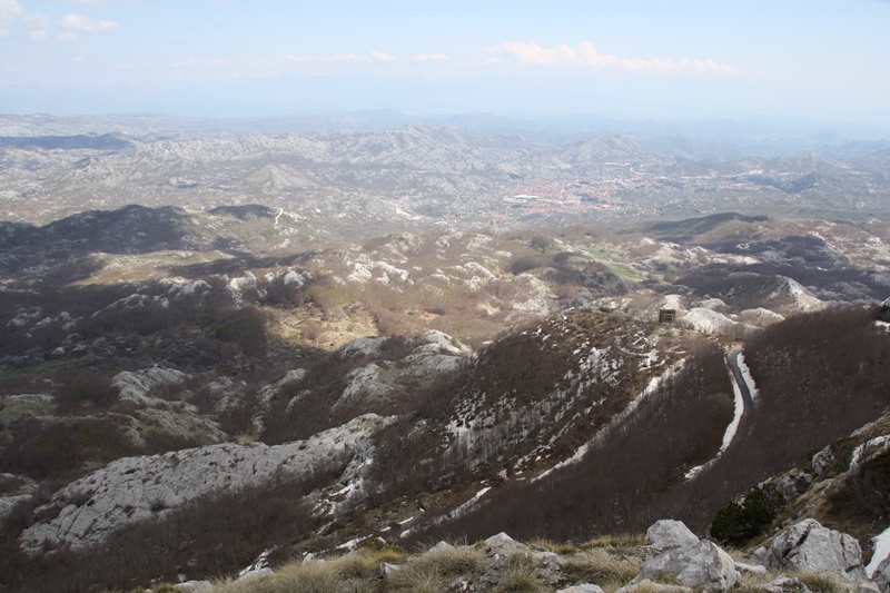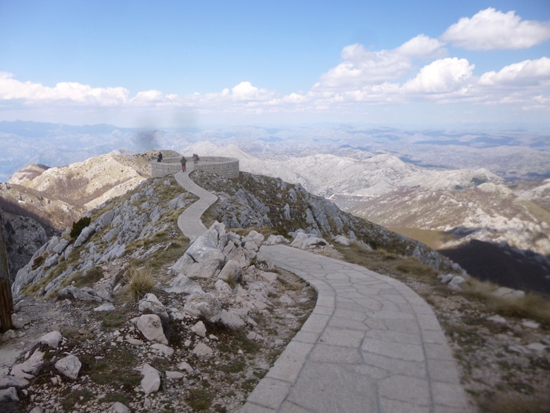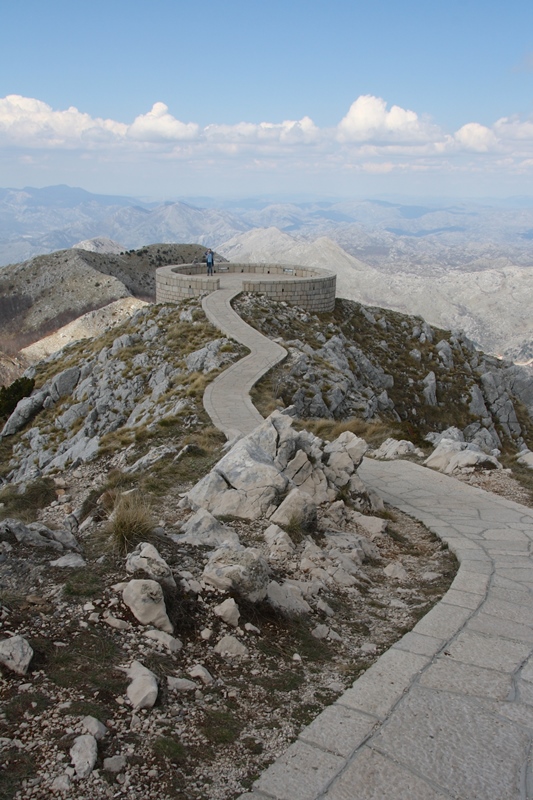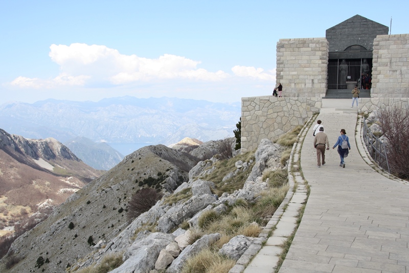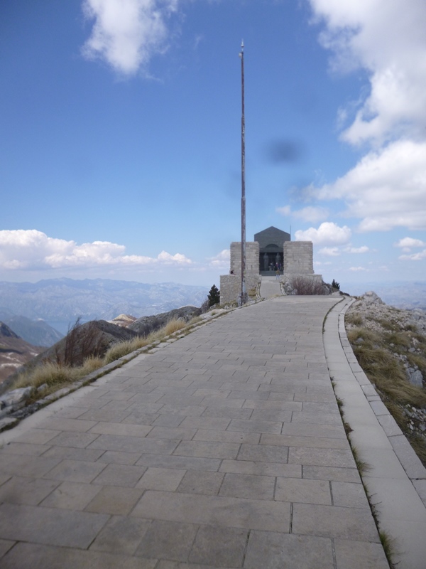 Saímos de Kotor parando aqui e acolá para apreciar as paisagens: a baía e a cidade de Kotor vistas de cima e o monte Lovćen (durante cerca 35 quilómetros) até atingirmos o ponto do nosso plano – Mausoléu Njegoš.