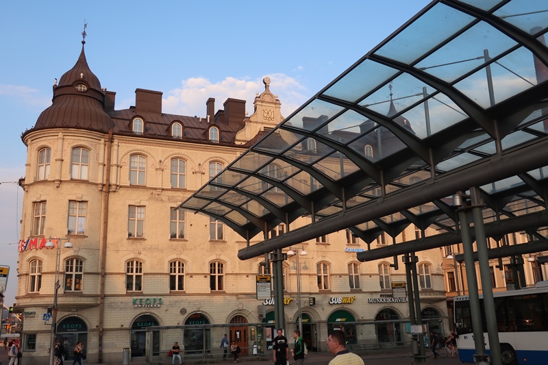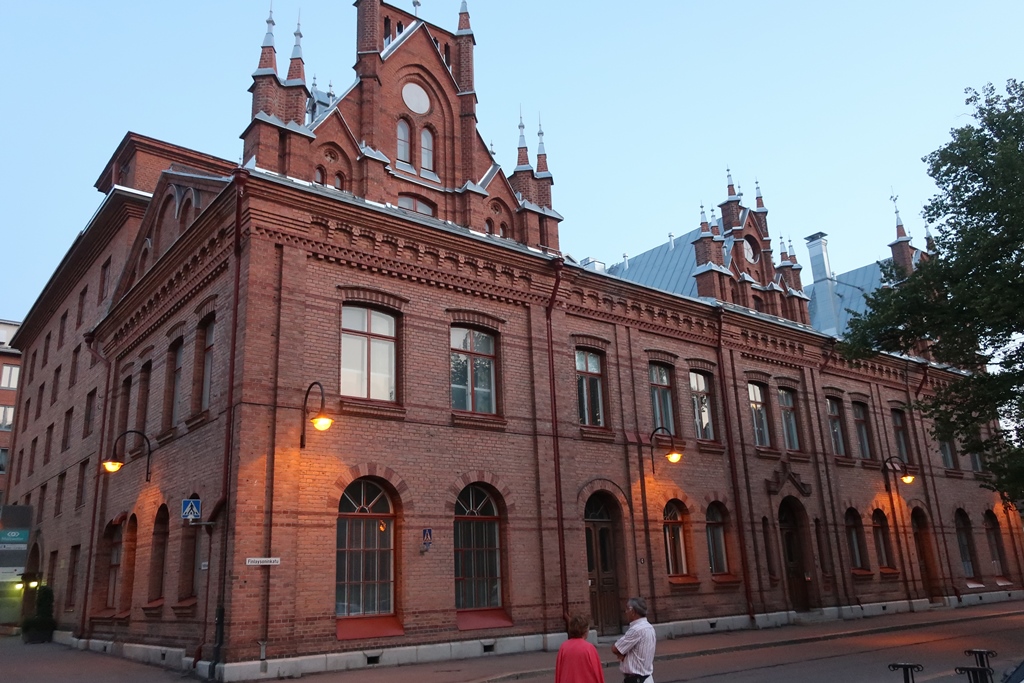 Caminhando depois ao longo da rua Alekxis Kiven katu, cruzando a rua mais longa do centro da cidade, Satakunnankatu, alcançamos a Área Finlayson – um bairro, no centro da cidade, residencial e industrial, onde havia uma antiga fábrica de algodão e também alguns monumentos como Palácios e uma Igreja.