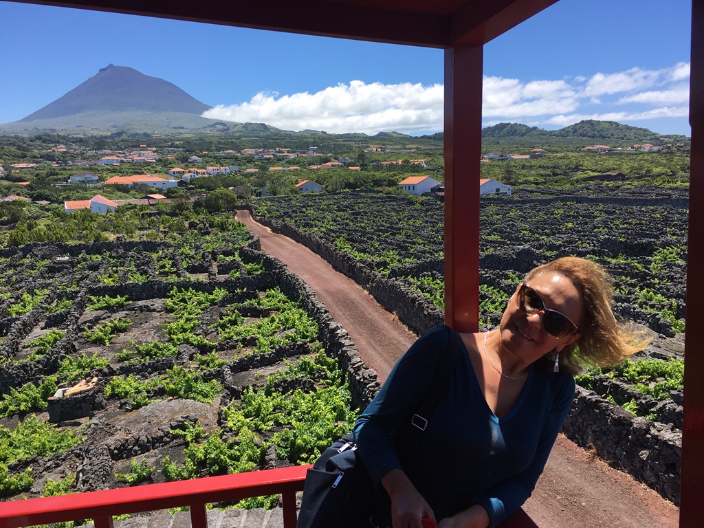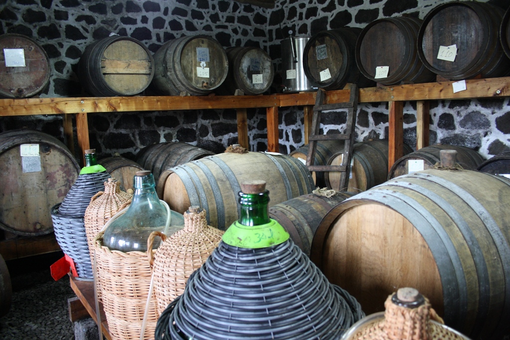 Depois de nos termos deliciado a caminhar e gozar, na zona da Criação Velha, (durante cerca de 2 horas) aquele rendilhado de muros de pedras negras salpicadas de verde à beira mar tendo como paisagem de fundo a montanha do Pico para um lado e a ilha do Faial para o outro, queríamos conhecer a história do vinho e provar o produto (seco ou doce) extraído com tanto amor e empenho, desde tempos idos.