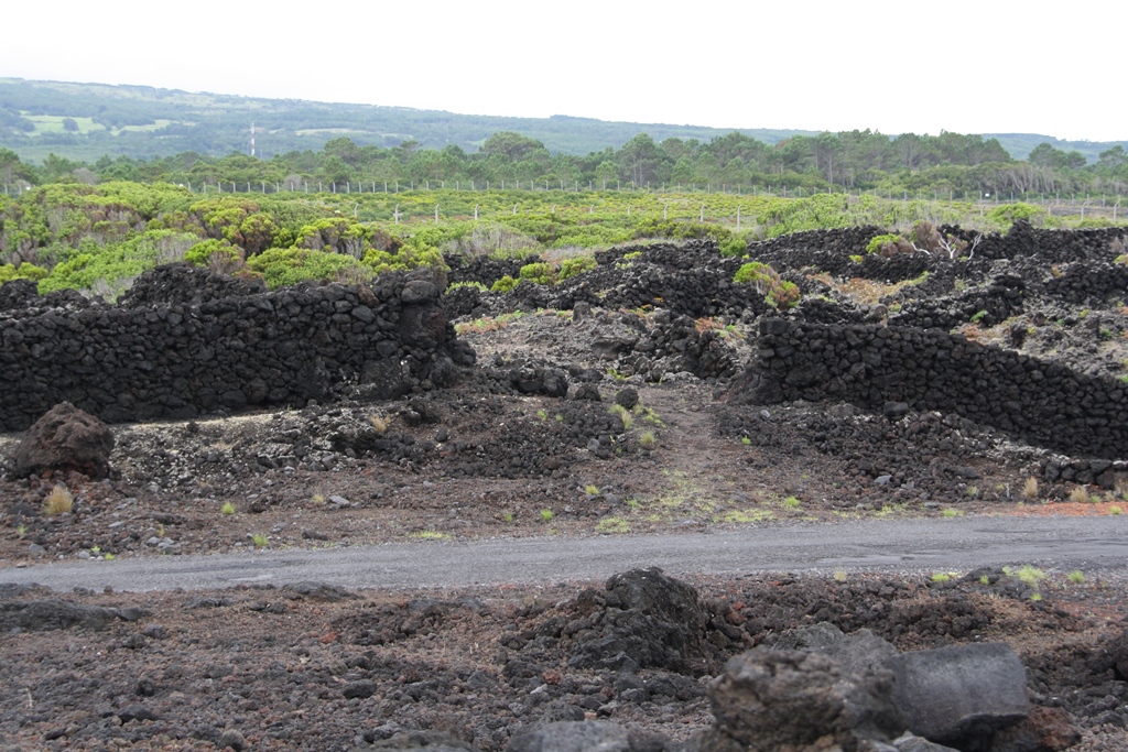 Todo esse esforço sobre-humano (edificação em pedra solta, arrancada a pulso dos mantos de lajido e do chão pedregoso) permitiu transformar vastas extensões de pedra em férteis campos de vinha. Existem 2 tipos de solo: chão de lajido- com muita pedra: rocha-mãe, perto do mar ou a confinar com ele; chão grosso ou biscoito- desagregado, pouco profundo e com muita pedra- revestido por bagacina (material vulcânico). Como estes solos são muito porosos e pobres em matéria orgânica é utilizado o basalto vulcânico em pó (adubo fértil para a vinha) rico em potássio, ferro e magnésio.