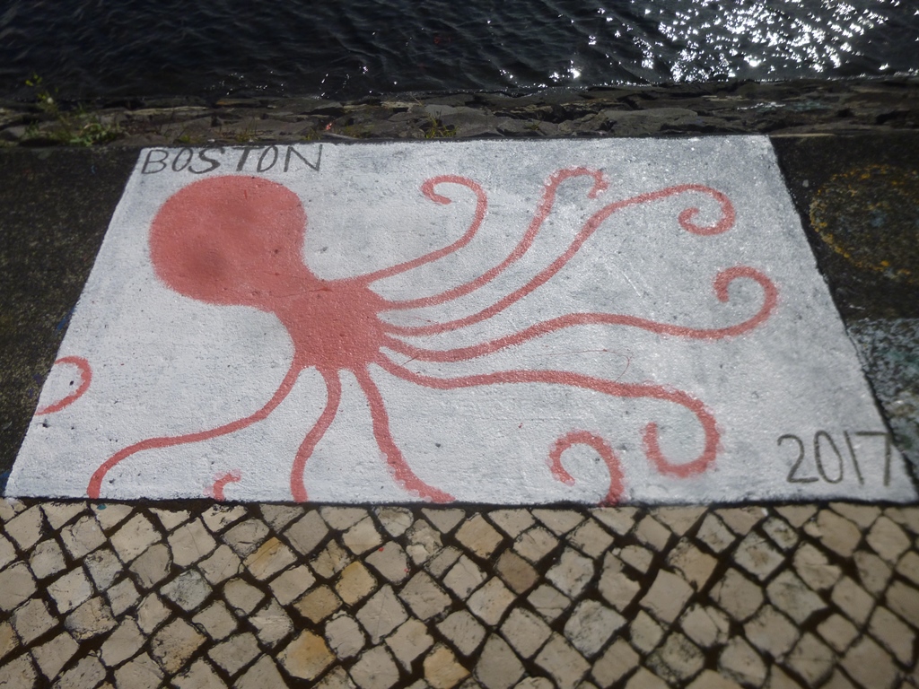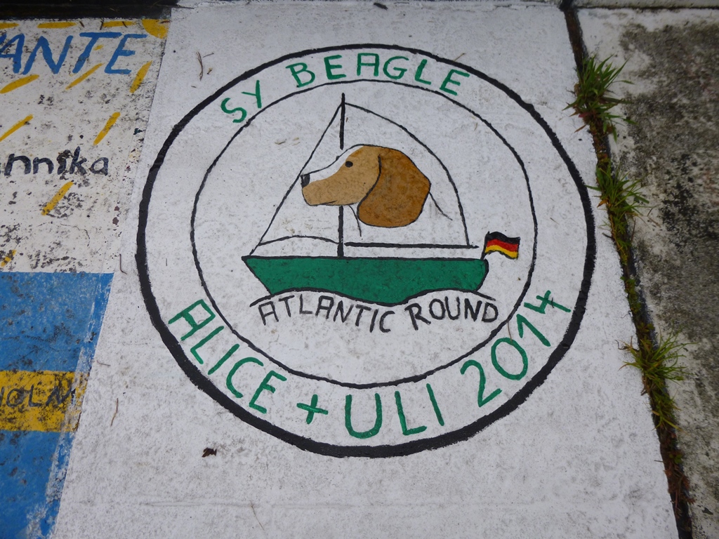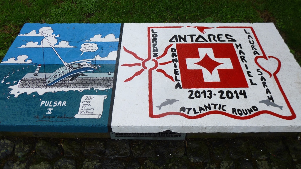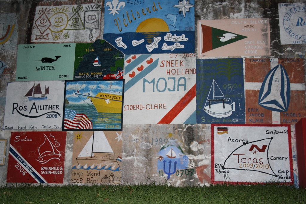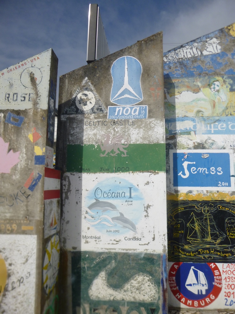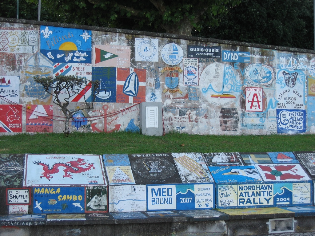 as pinturas nas paredes e no chão são o testemunho da passagem dos iatistas ao longo dos anos – as pinturas náuticas são uma autêntica galeria de arte ao ar livre com uma temática comum ” a minha presença, no ano tal, na marina faialense”