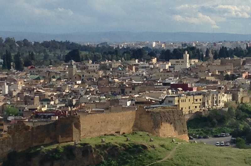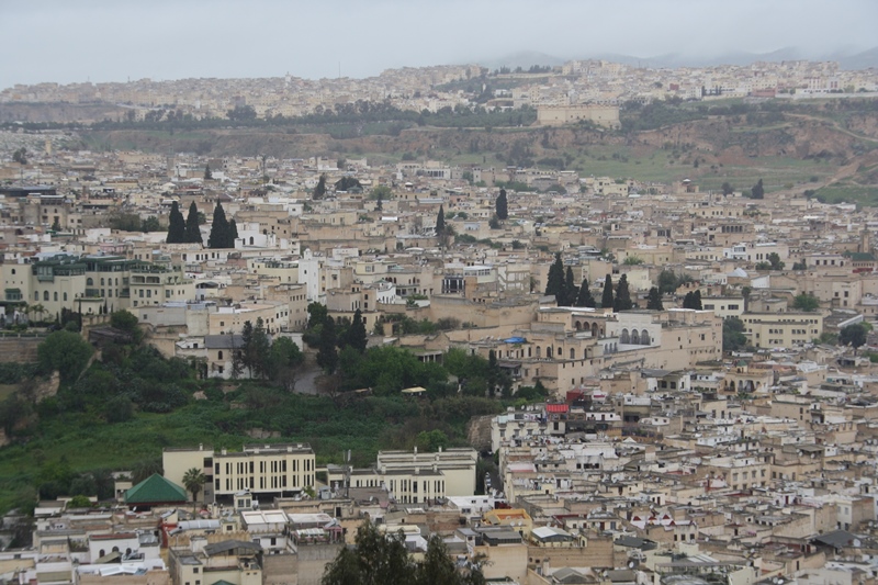 Esperava-nos um dia sui generis nas nossas vidas, mas não nos arrependemos de termos escolhido conhecer a labiríntica medina de Fez, acompanhados pelo guia Mustafa. (dia inteiro – 400 Dh+100Dh pela amabilidade). Aconselhou que começássemos o nosso dia por ver Fez de um plano alto. Para tal dirigimo-nos para lá de carro, seguindo as instruções dele, que foi connosco. De lá têm-se panorâmicas fabulosas sobre a cidade e entende-se o quão compacta é!