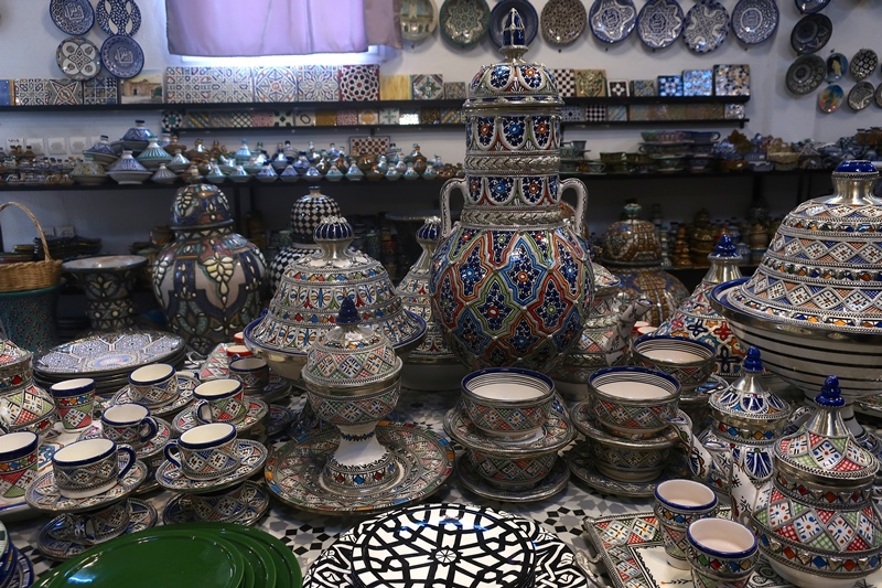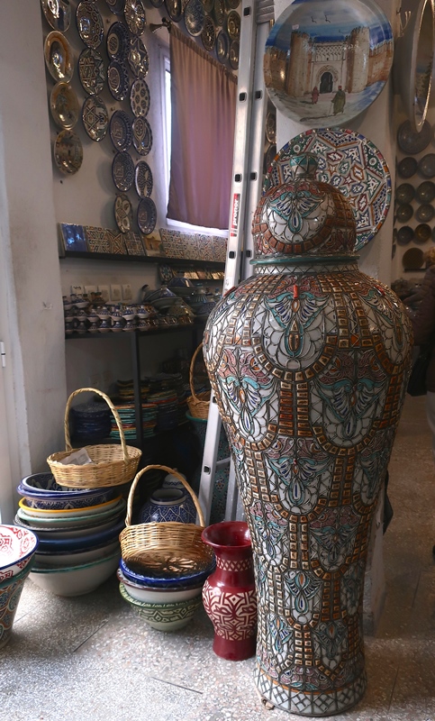 Vimos os artífices a fazer todo o tipo de artigos – desde tajines (panela em cerâmica com tampa cónica) , a tampos de mesa, a pratos… Muito interessante!