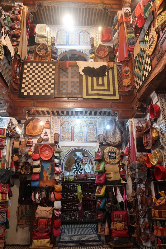A pé embrenhámo-nos então noutras zonas da medina: é labiríntica possuindo 9800 ruelas, mas foi espetacular. Sentimo-nos num El Corte Inglês marroquino com uma oferta a todos os níveis. Circulámos pelas mais diversas áreas: legumes, peixe, carne, especiarias, artigos mais desusados, roupas…. Visitámos também uma fábrica de tapeçarias que de alguma maneira nos faz lembrar Arraiolos, tendo no entanto os tapetes outro tipo de design e sendo confecionados de uma forma diferente.