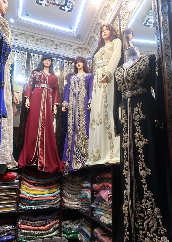 Depois do almoço ainda tínhamos pela frente muitas ruelas interessantíssimas: perto da “Zaouia”de Moulay Idriss que é considerado o centro dos souks há a “Kissaria” (sedas, brocados,“kaftans”- túnicas e joalharia)