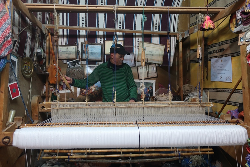 Fomos também a uma fábrica de tecelagem a funcionar em pleno – muito interessante! – ficámos a saber que usam catos para deles extraírem seda vegetal (que existem em abundância em terras marroquinas – plantas que crescem sozinhas em regiões áridas, sem precisar de muita irrigação) sendo utilizada para fazer lenços, écharpes …
