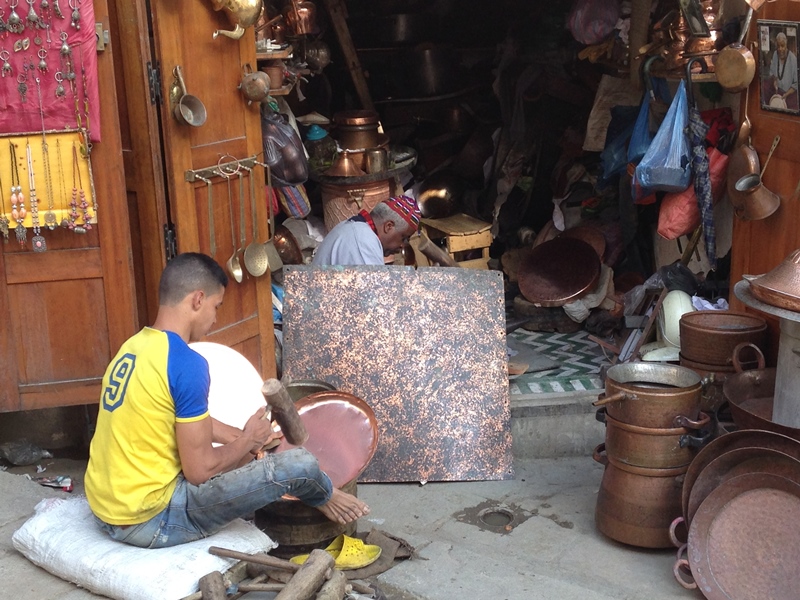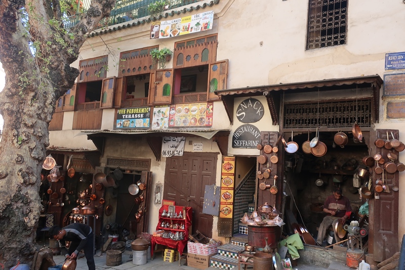 Dirigimo-nos depois para o exterior onde se situa a Praça el-Nejjarine, que é um antigo local de oficinas de latão e cobre. Fez é, ainda hoje, o mais importante centro desse tipo de produção.