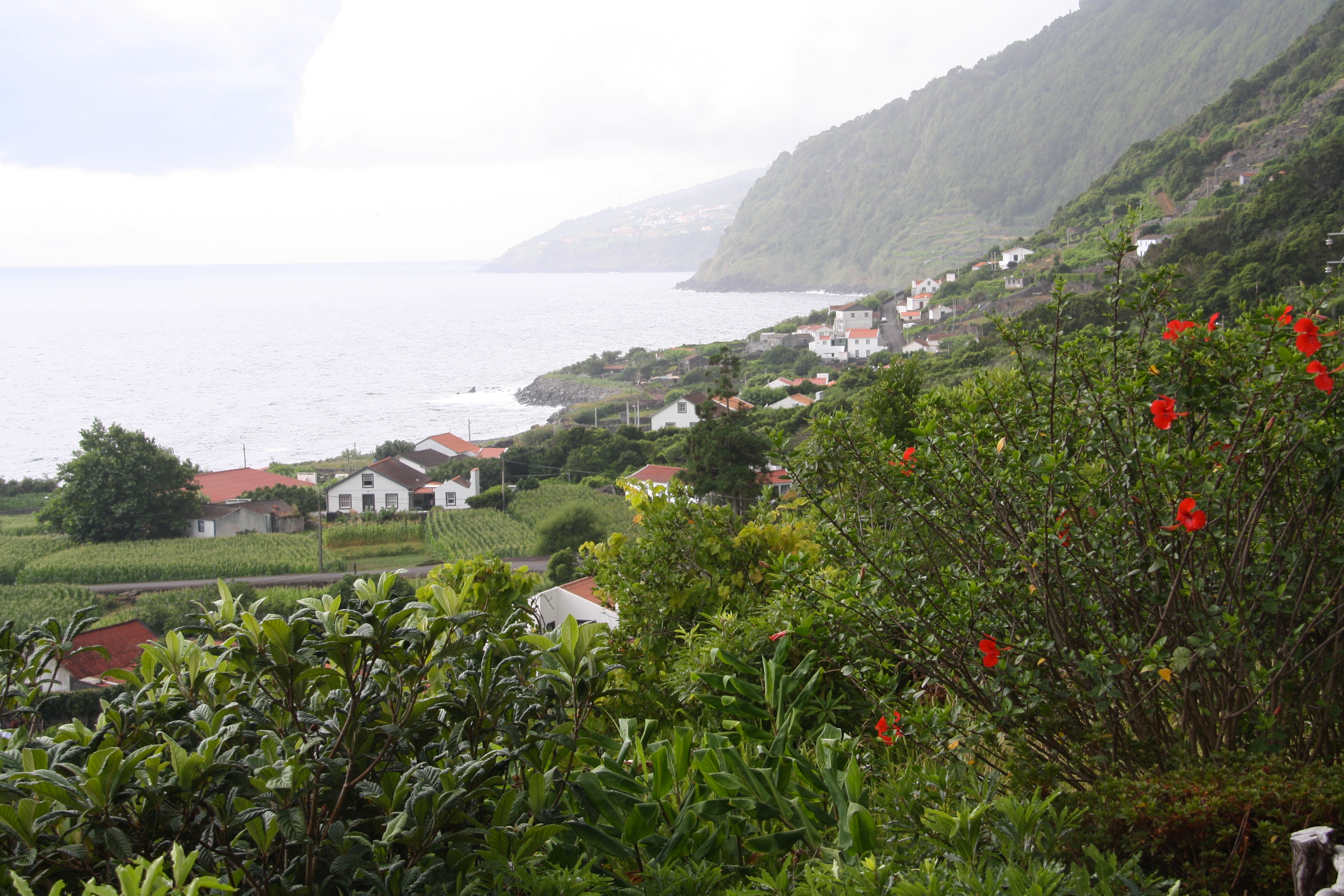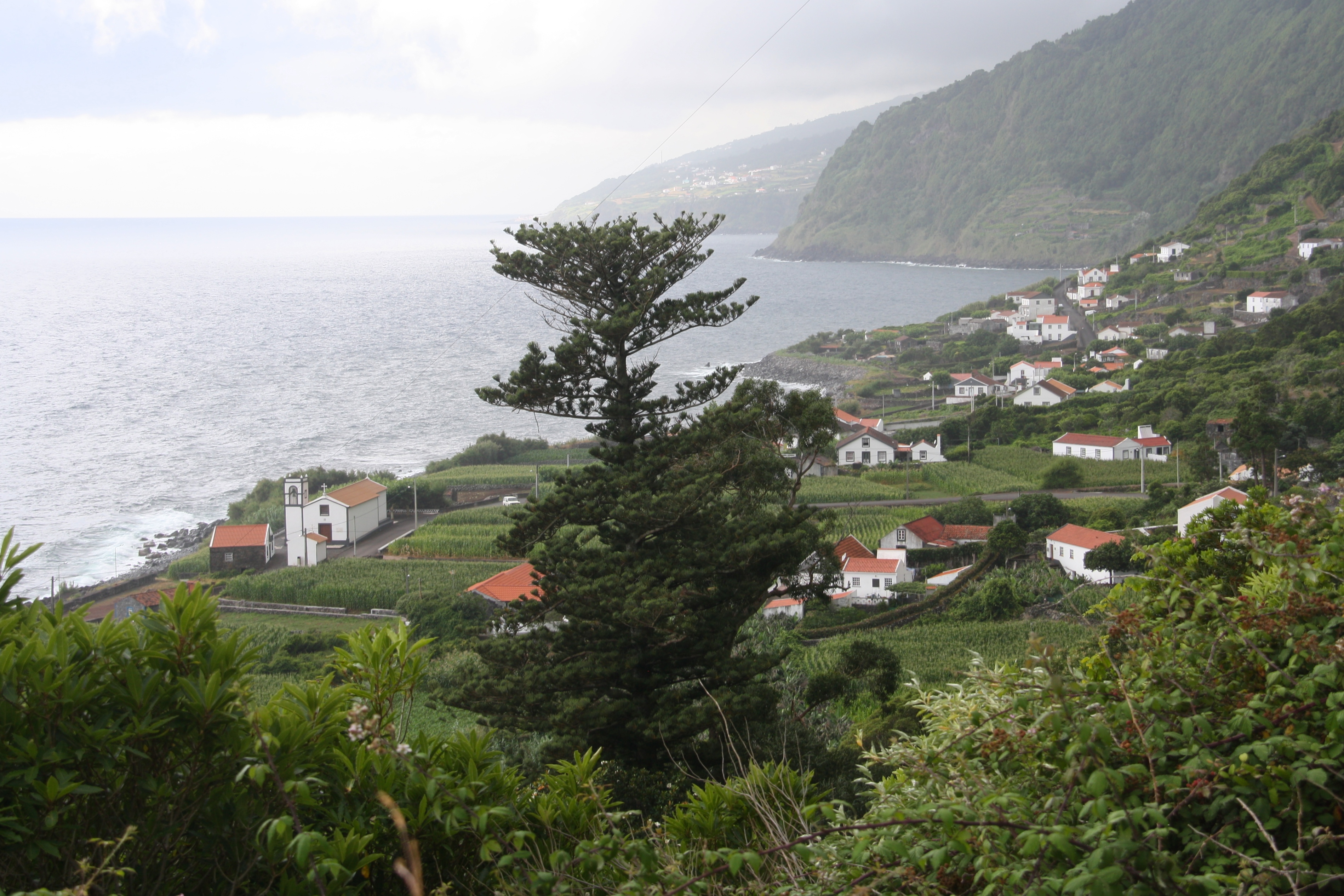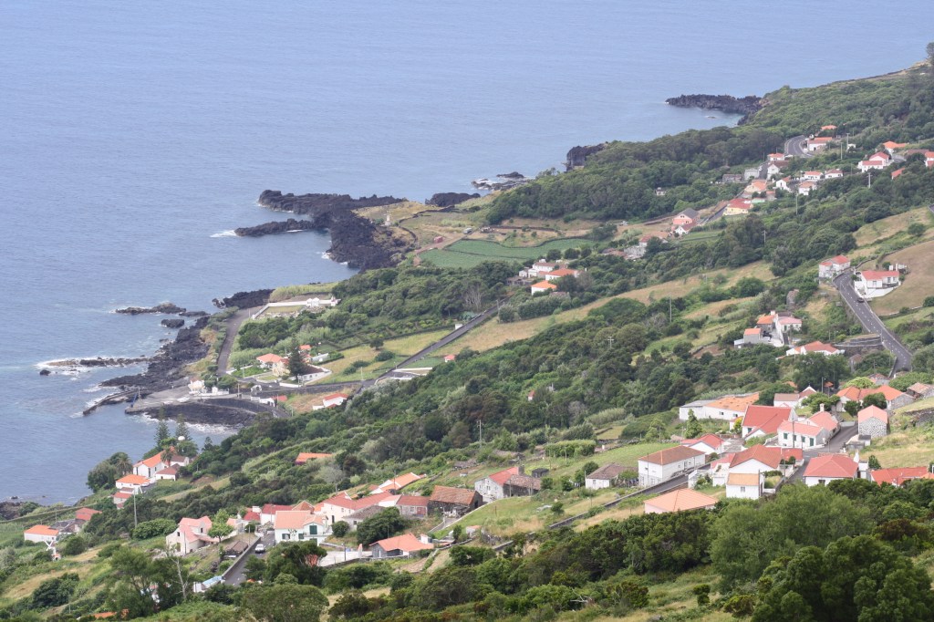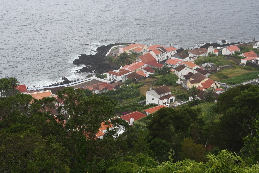 A nossa intenção era fazer a costa sul. Na zona de Santo Amaro começámos logo por parar num miradouro com vista para Velas e para a costa.