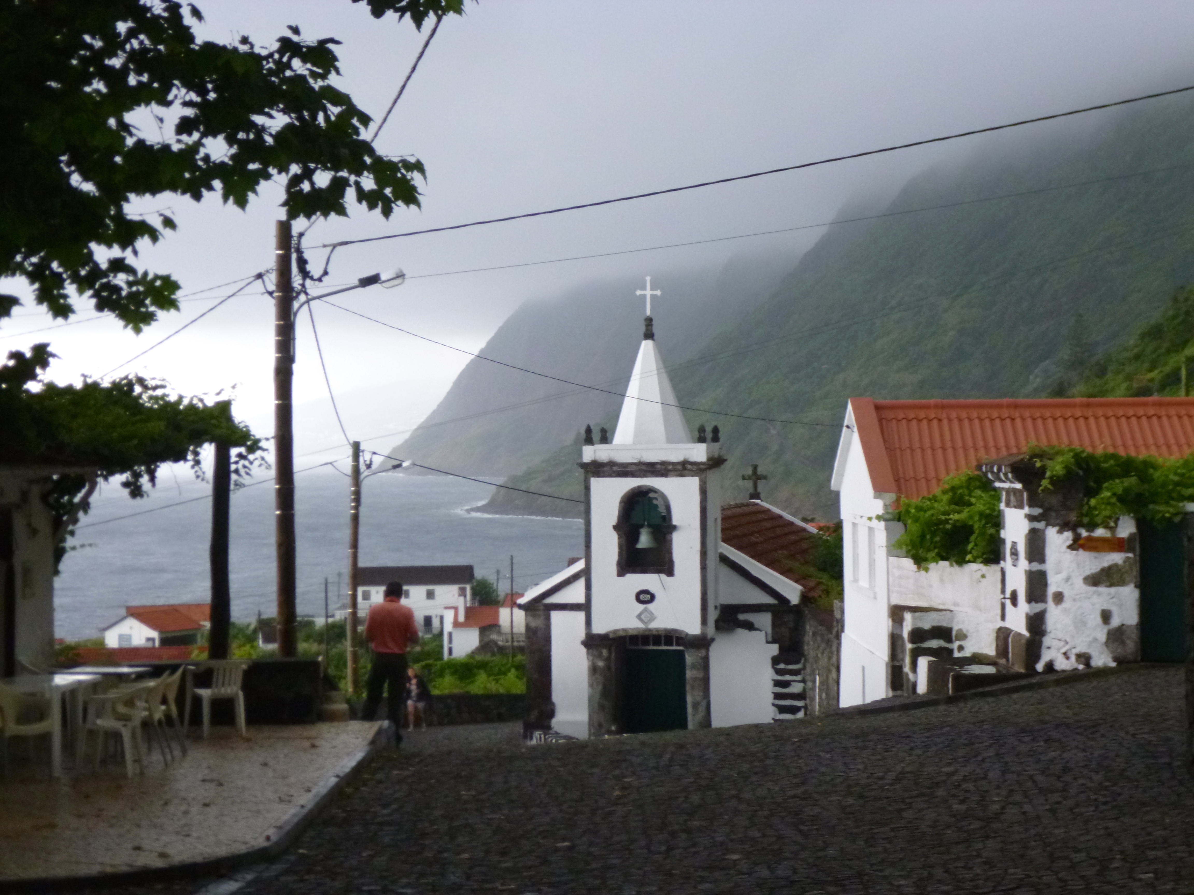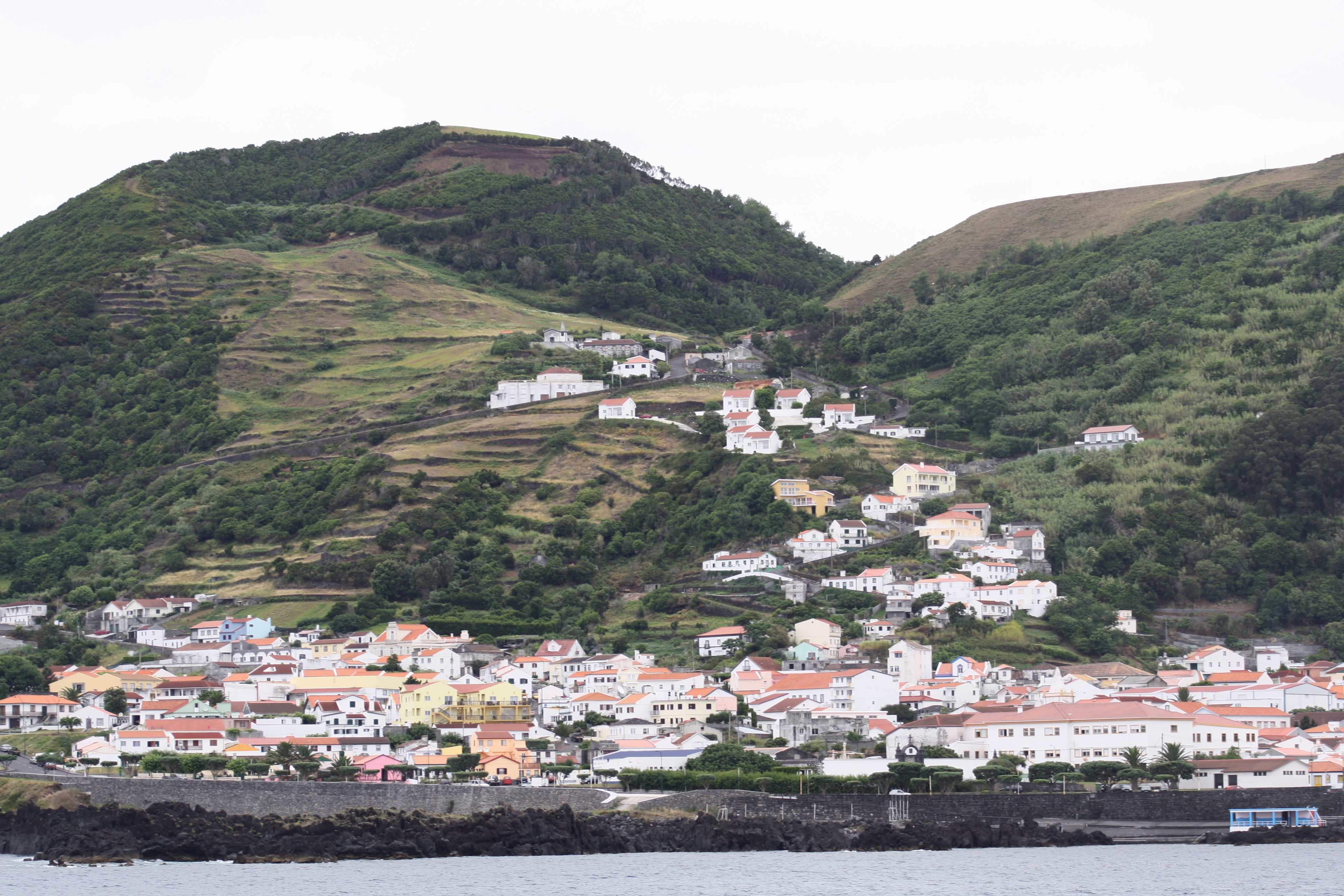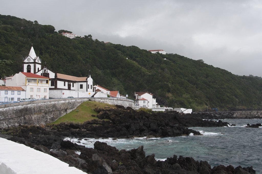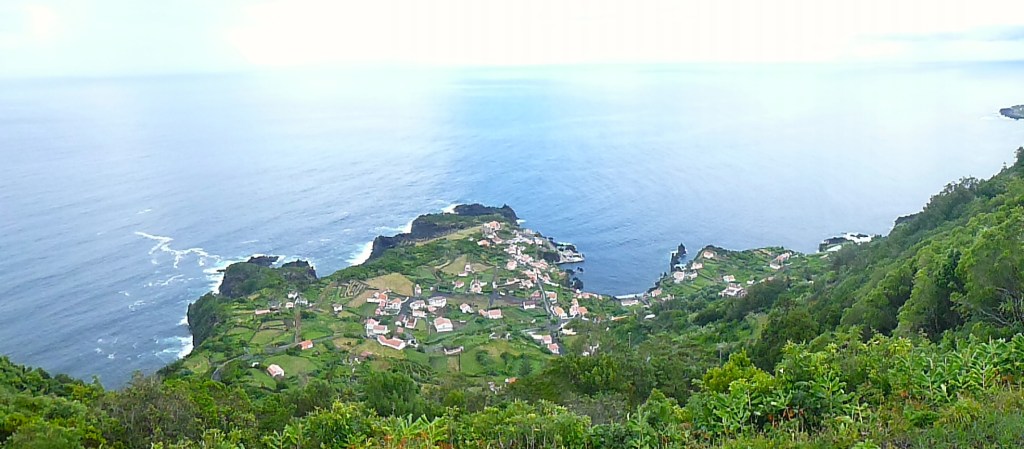 A nossa intenção era fazer a costa sul. Na zona de Santo Amaro começámos logo por parar num miradouro com vista para Velas e para a costa.