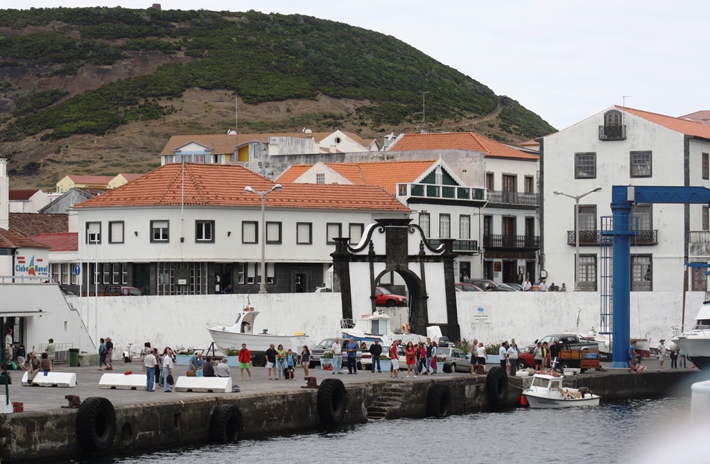 VELAS – A capital da ilha de São Jorge é a vila de Velas. Tem um porto de mar sendo lá que atracam os barcos/ferries provenientes de outras ilhas, sendo logo recebidos por um Portão do Mar, o qual fazia parte das muralhas de defesa. Esta vila encontra-se entre os povoados mais antigos da ilha de São Jorge estando localizada num extenso terreno relativamente plano junto à costa ao lado das montanhas e longas arribas junto a uma longa enseada. É relativamente pequena. Tem uma rua pedonal com calçada portuguesa, havendo num dos topos o Jardim da Praça da República – largo principal da vila de Velas com um coreto e com alguns edifícios entre os quais sobressai o edifício da Câmara Municipal (um dos exemplos máximos do barroco insular – construção do séc. XVII ) e no outro topo a Igreja de São Jorge (construída em 1460).