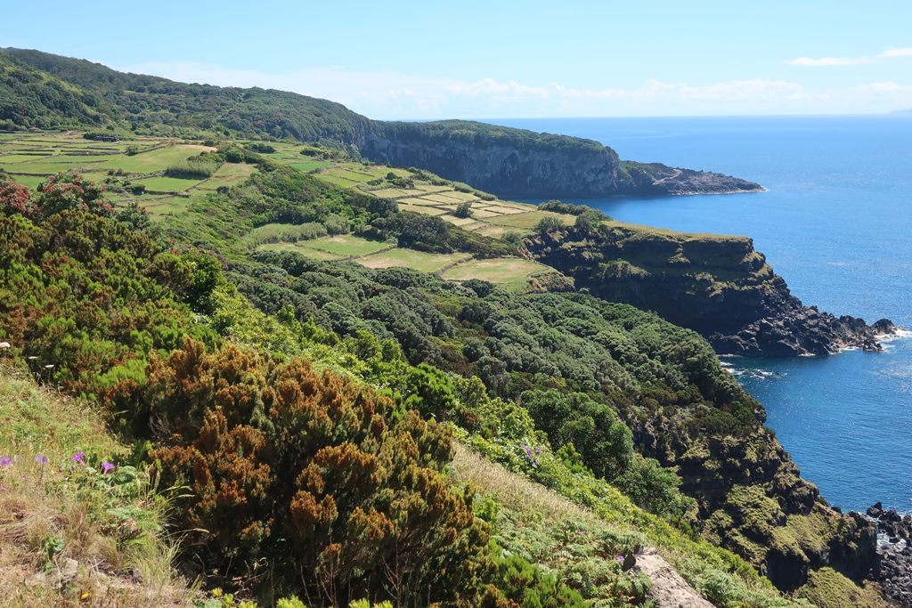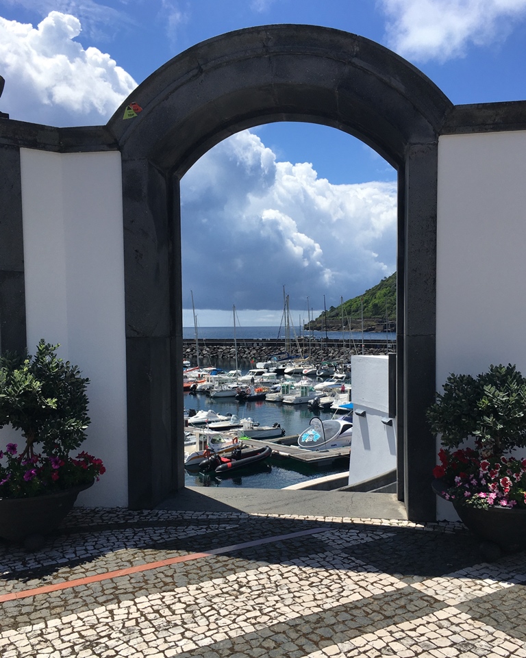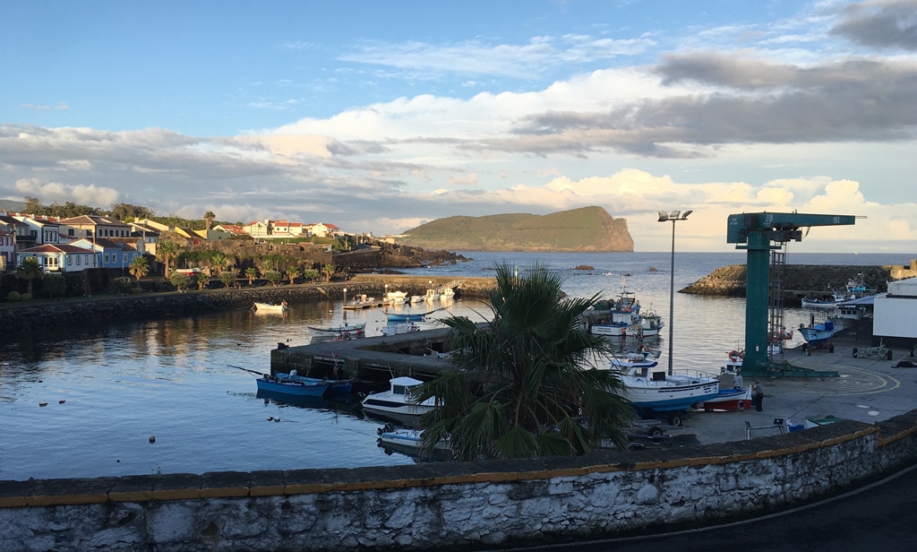 Ao longo do trajeto olhando através de algumas vielas, temos vistas interessantes para a zona da marina e baía da Praia da Vitória bem como para o Miradouro do Facho. Descemos até à marina e gozámos mais alguns momentos de descontração. Dirigimo-nos depois para Cabo da Praia e Porto Martins, parando aqui e acolá para gozar a paisagem divinal – casario e água, até que começámos a avistar algo ainda mais fenomenal – o Porto Judeu e os famosos Ilhéus das Cabras, já na costa sul.