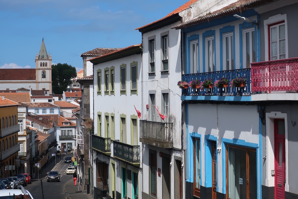 Passámos de carro pela zona da baía de Angra, Pátio da Alfândega e estacionámos perto do Largo dos Remédios. Vimos o Santuário de Nª Sra da Conceição e à medida que fomos descendo a Rua da Conceição e a Rua do Galo fomo-nos deliciando com o casario interessante, tendo começado a vislumbrar a Sé Catedral e a Rua da Sé.