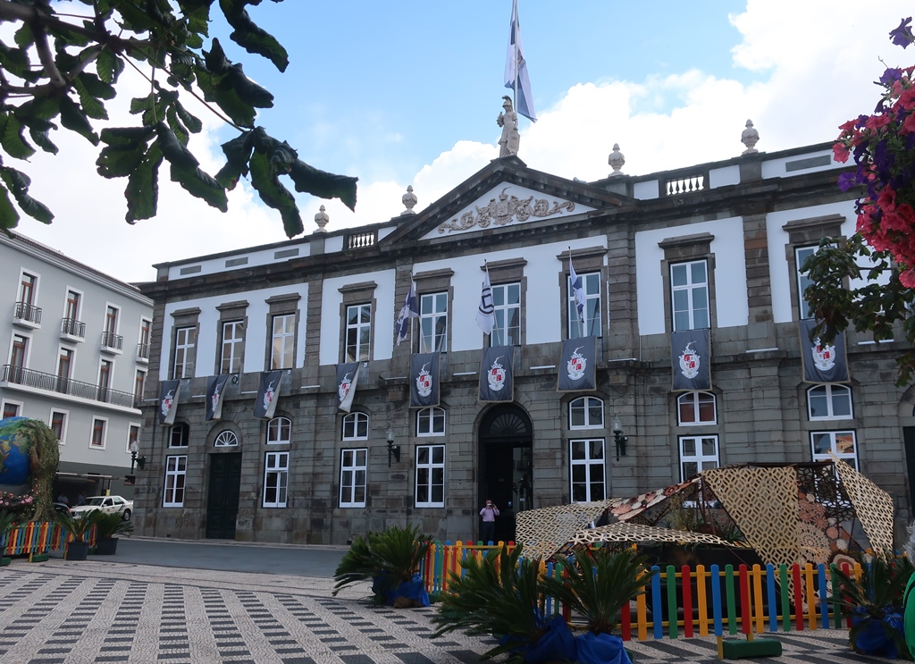 Descendo uma escadaria eis-nos chegados à Praça Francisco Ornelas da Câmara onde se situa a Câmara Municipal ou Paços do Concelho, construção que remonta ao séc. XVI.