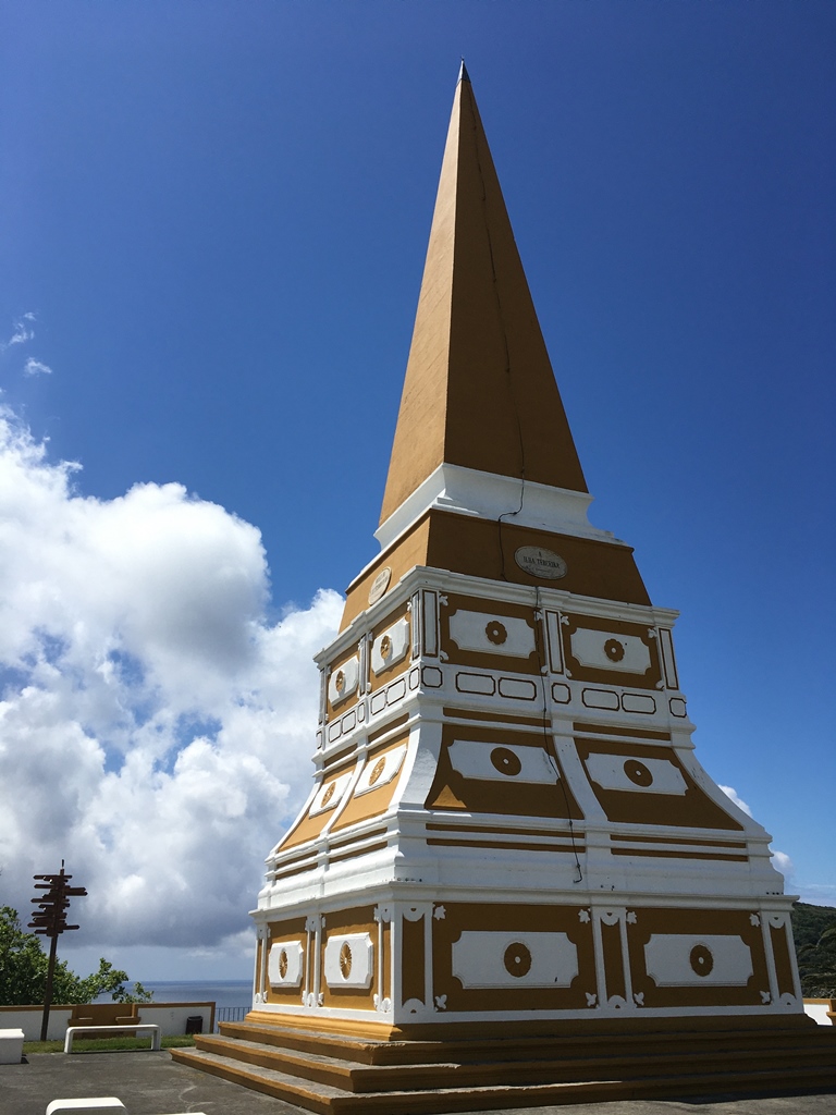 Não tínhamos tempo para tudo e assim sendo, optámos por gozar a tranquilidade e beleza do jardim com uma oferta estrondosa de árvores, arbustos e flores. Caminhámos ao longo dele, tendo depois começado a subir uma escadaria e indo observando Angra e o Monte Brasil de um outro prisma. À medida que íamos subindo ficámos um pouco sem saber para onde olhar: se para o nível inferior ou superior – ambos foram dignos de uns quantos cliques. Quando atingimos o topo, tínhamos o imponente Obelisco da Memória à espera dos nossos olhares, mais de perto. É sempre aquele local desconcertante pela abrangência de paisagem que oferece! Ficamos sempre sem saber se preferimos a paisagem deslumbrante oferecida a partir do Monte Brasil ou se esta do Obelisco! Ambas são de cortar a respiração e dão sempre azo a cliques incomensuráveis.