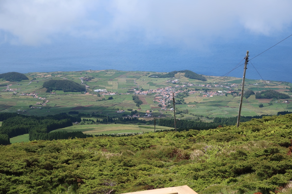 Após esse momento, continuámos a fazer o percurso pela costa norte, tendo passado pelas Quatro Ribeiras (zona balnear). A esse nível fomos para o interior pois queríamos ir ao miradouro da Serra do Cume, conhecido por oferecer uma paisagem interessante para a baía da Praia da Vitória e para a planície da zona das Lajes e ainda para uma vasta área do interior da ilha e para a sua célebre manta de retalhos (planície dominada pelo verde das pastagens e o negro dos muros de pedra vulcânica). “Consomem-se umas quantas películas”!